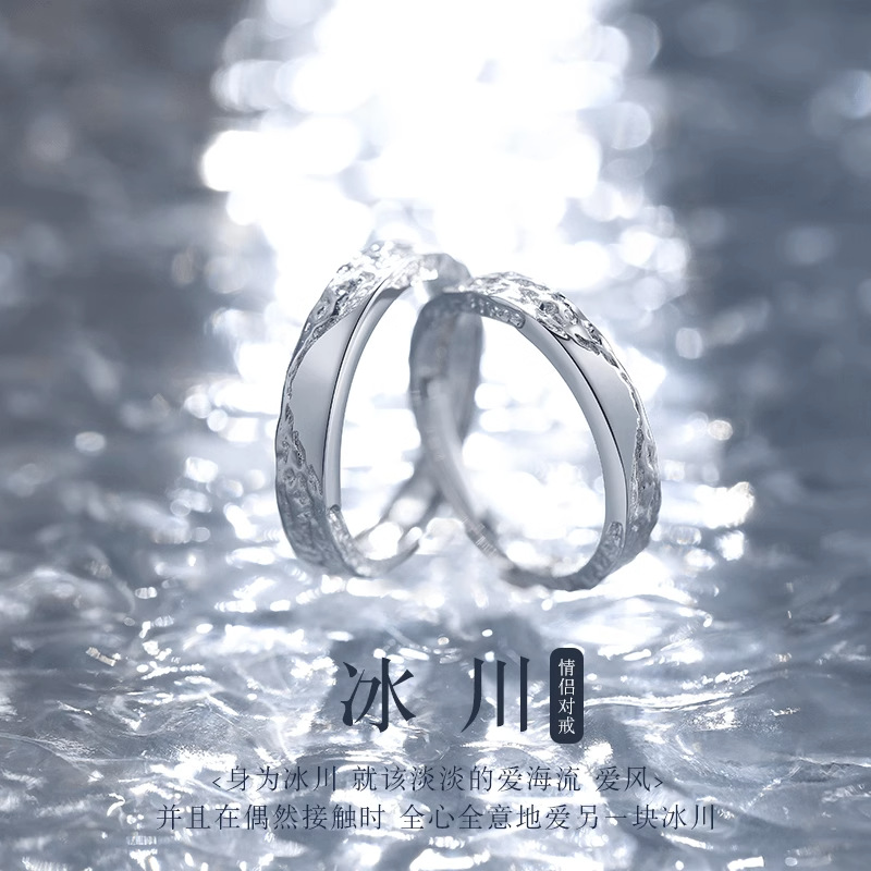 氷河カップルリングリング女性ins小衆デザインシンプル気質高級感誕生日プレゼント男性彼女