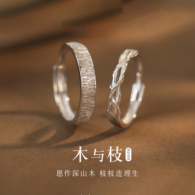 木与枝情侣戒指高级感女男一对小众设计款对戒520情人节纪念礼物