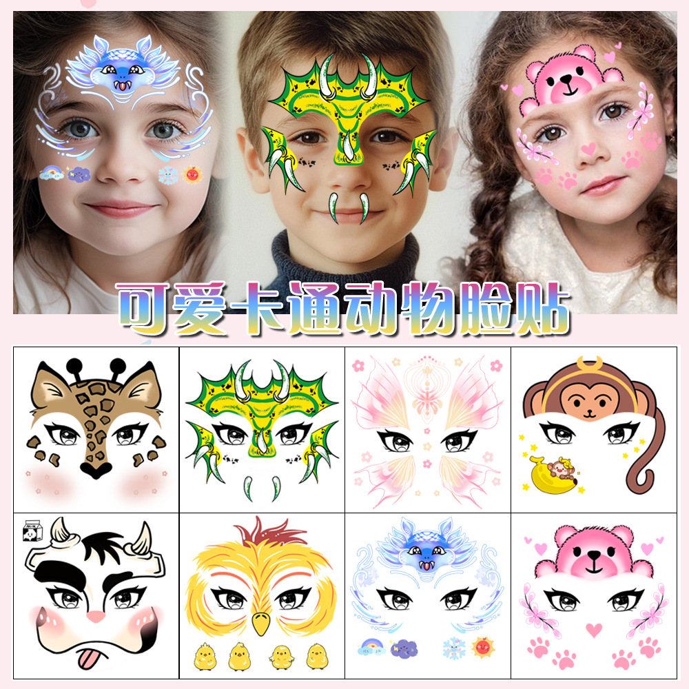 国境を越えた新しい子供の顔動物メイク漫画の顔ステッカー子供のホリデーパーティー一時的なタトゥーステッカー