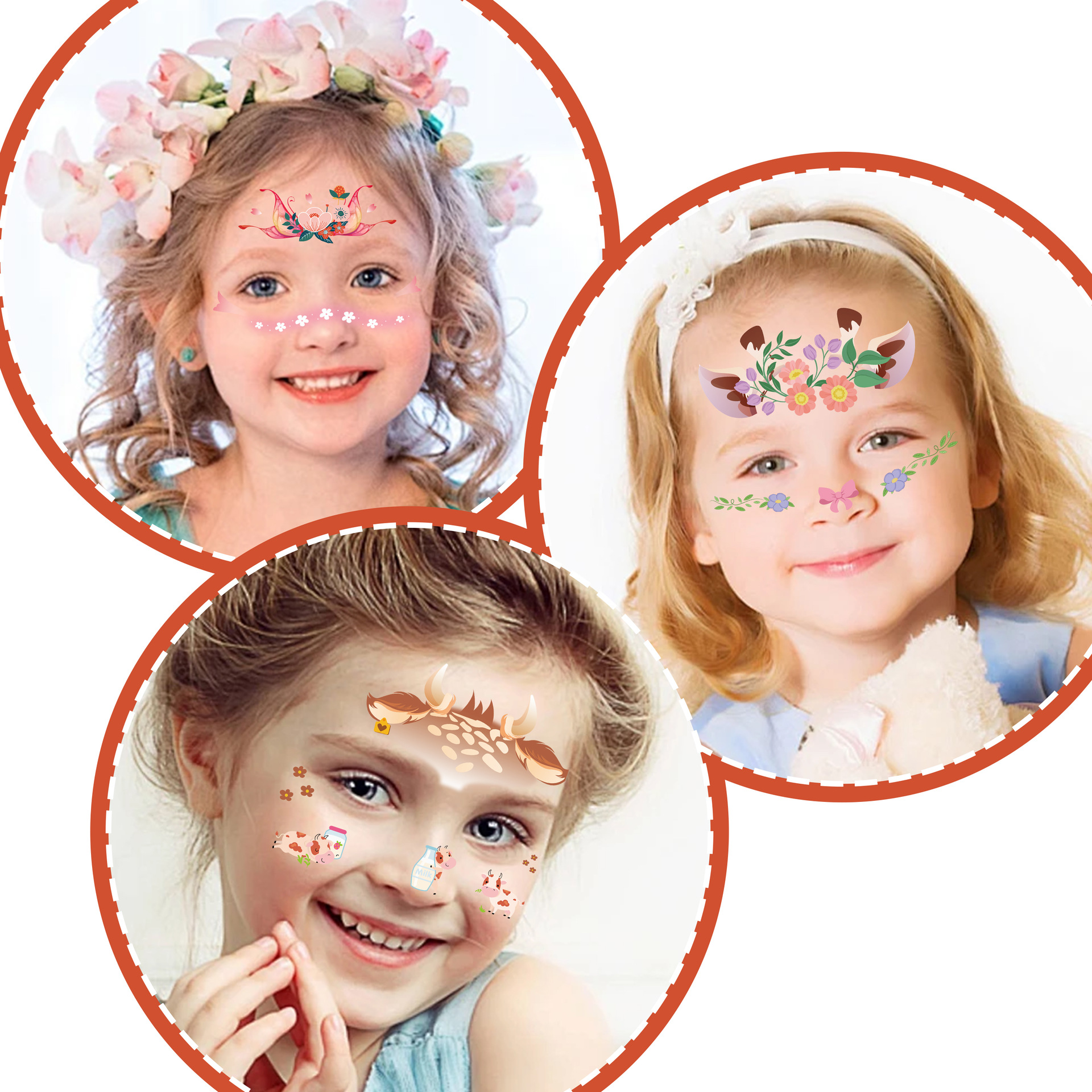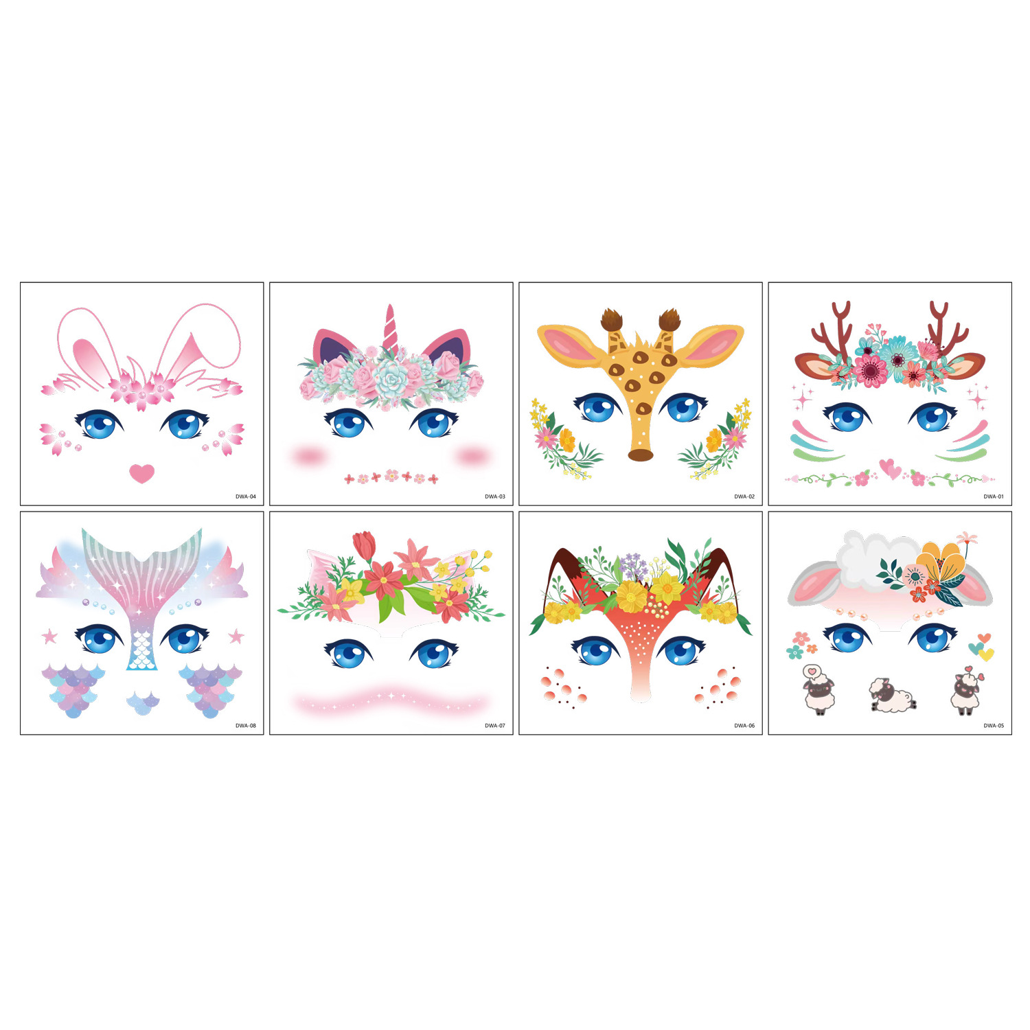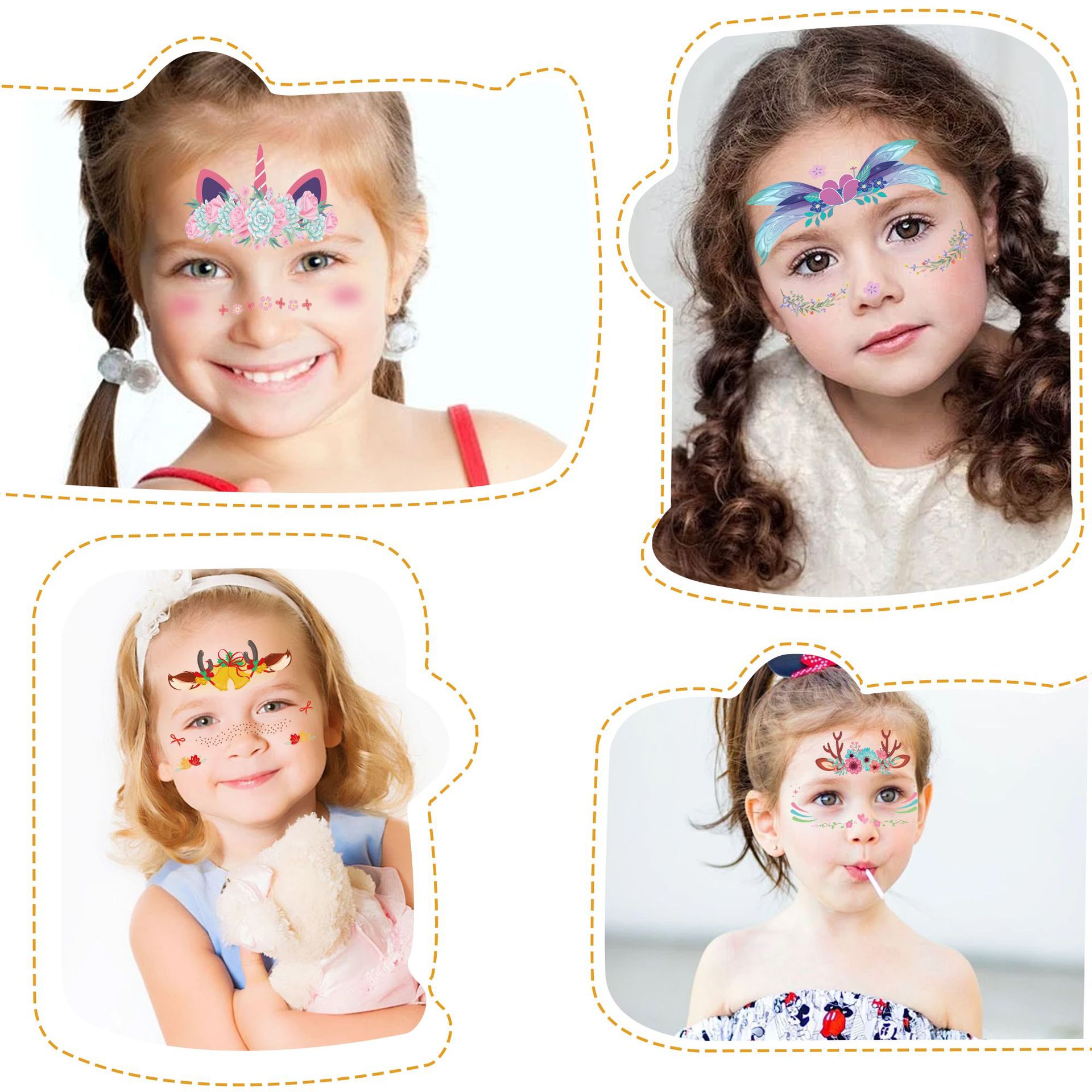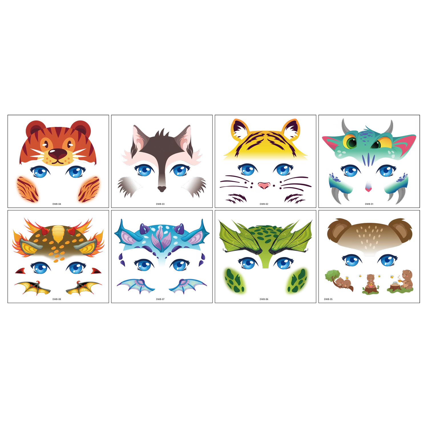 跨境亚马逊新款儿童妆容脸贴可爱卡通动物节日派对脸部临时纹身贴