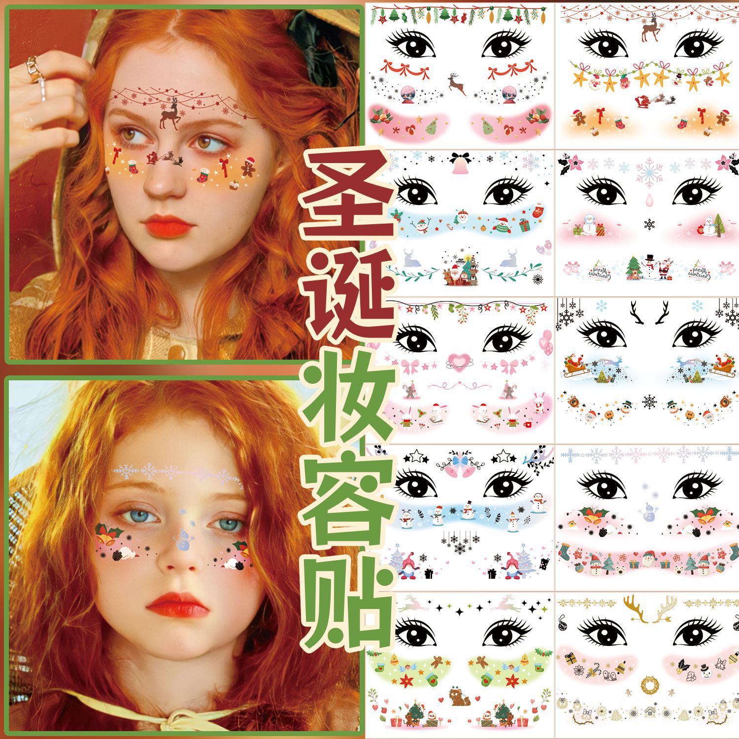 クロスボーダー新作クリスマスステッカー子供用ステージメイクアップフェイスステッカーパーティーステージパフォーマンス洗えるタトゥーステッカー