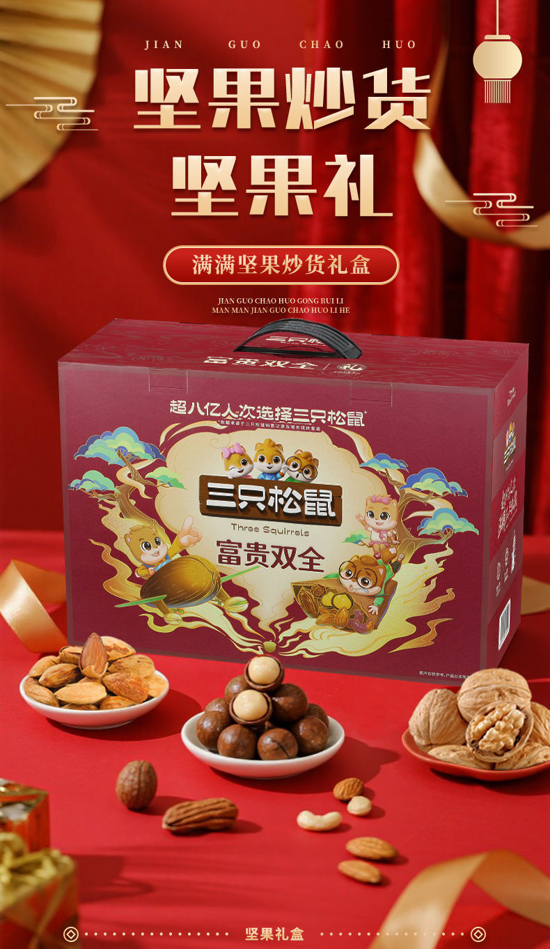 リスナッツ三匹大ギフトボックス1654g/15袋ミックススナック大ギフトバッグ祝日ギフトナッツ箱