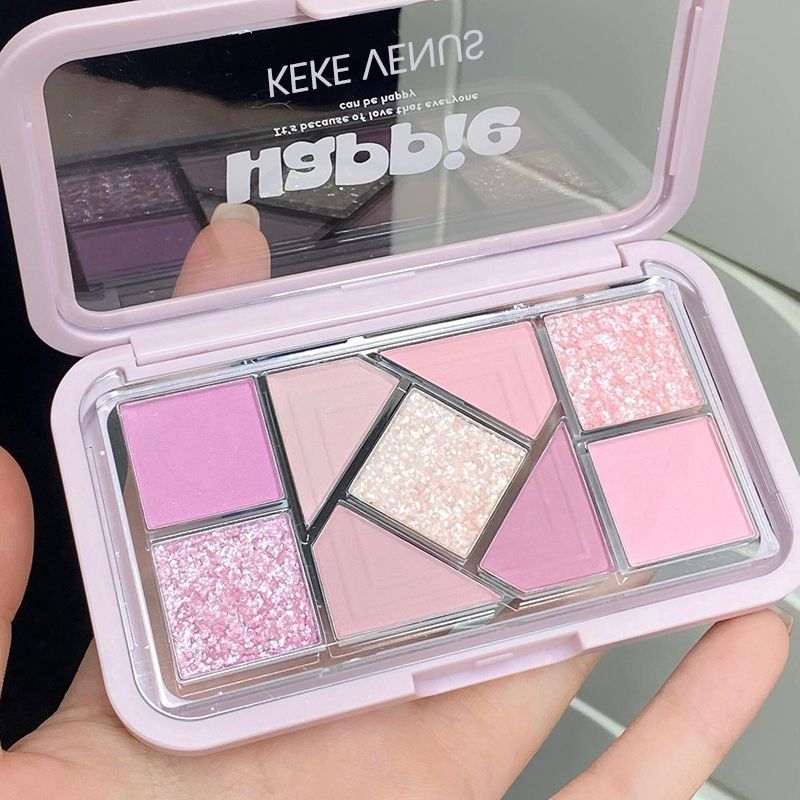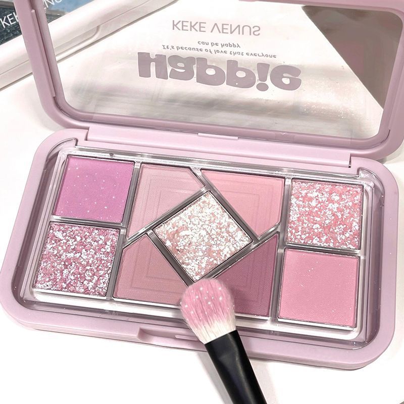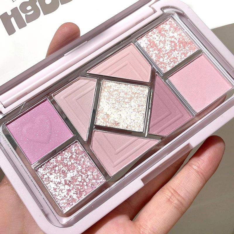 2025年の新商品の小さいピンクの枠の9色のアイシャドーの皿の大きい地色の青い真珠の光の学生の頬紅の純粋な欲のアイシャドー
