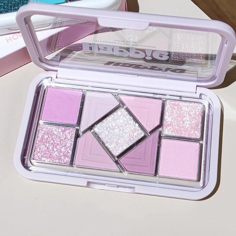 新款小粉框眼影盘九色珠光哑光立体提亮修容多色一盘多用高光闪粉