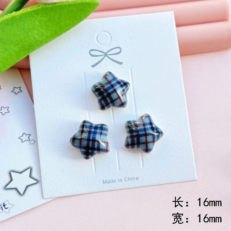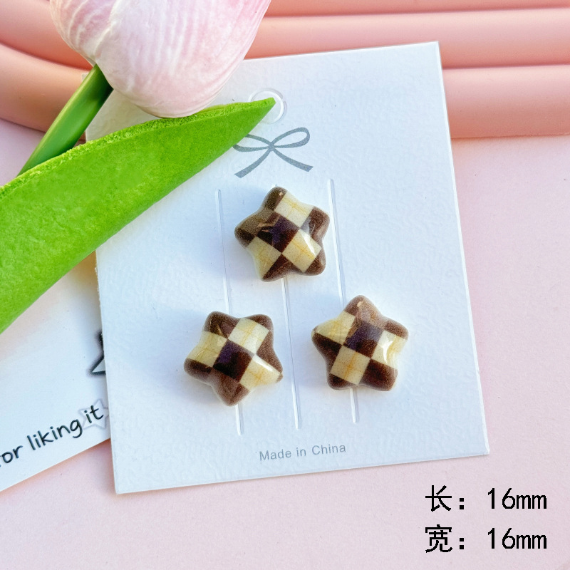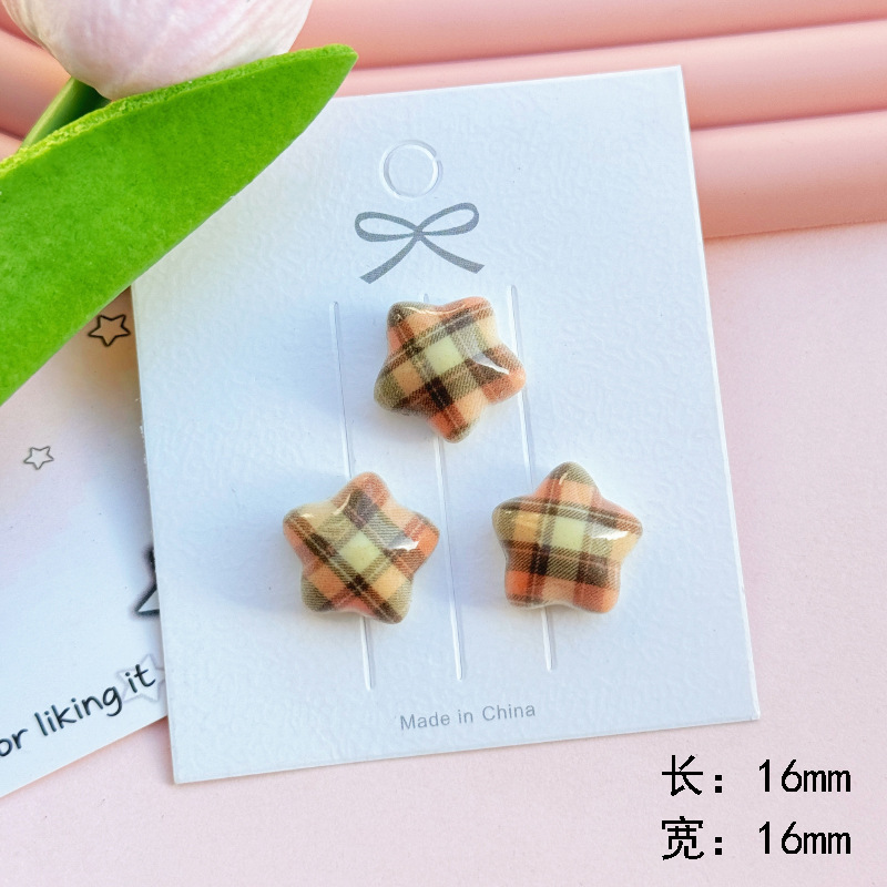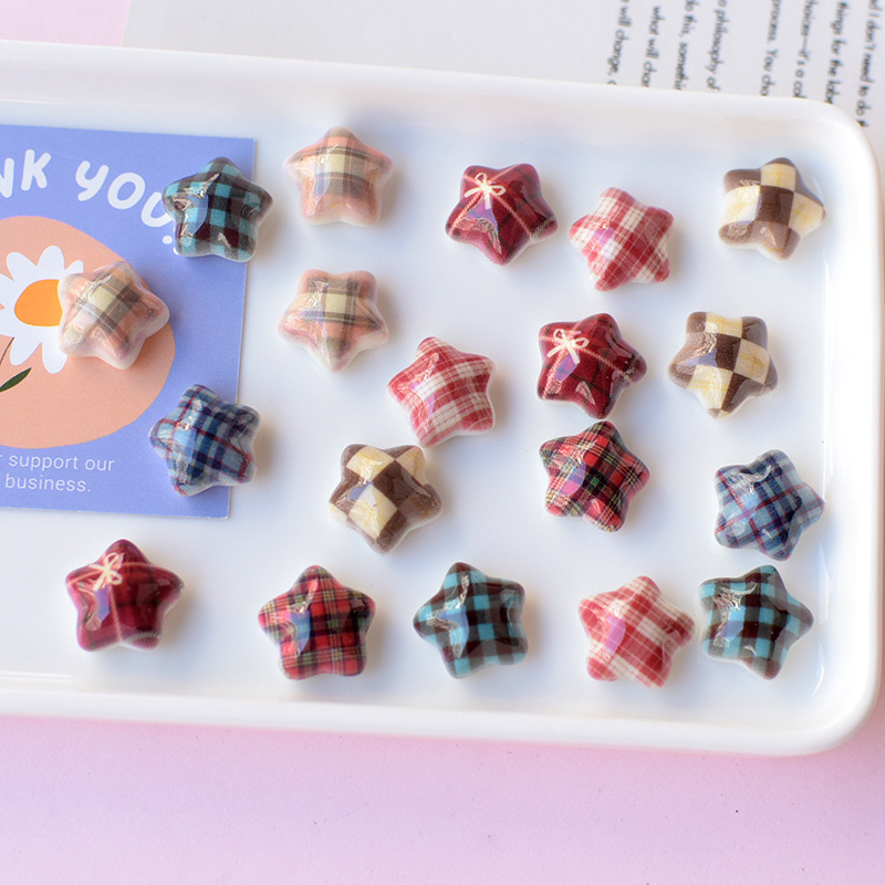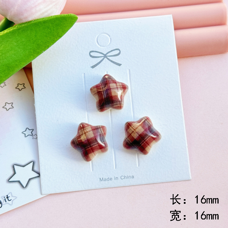 秋冬色迷你格纹五角星树脂配件diy奶油胶手机壳发夹美甲水杯饰品