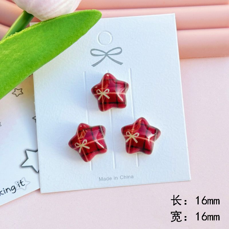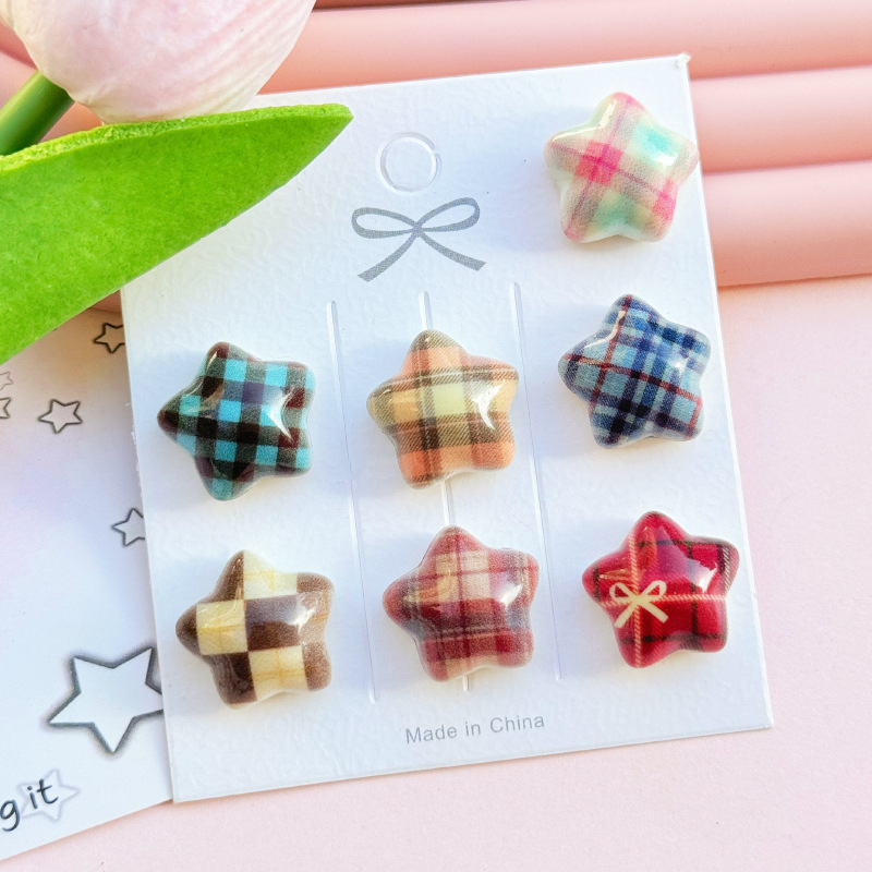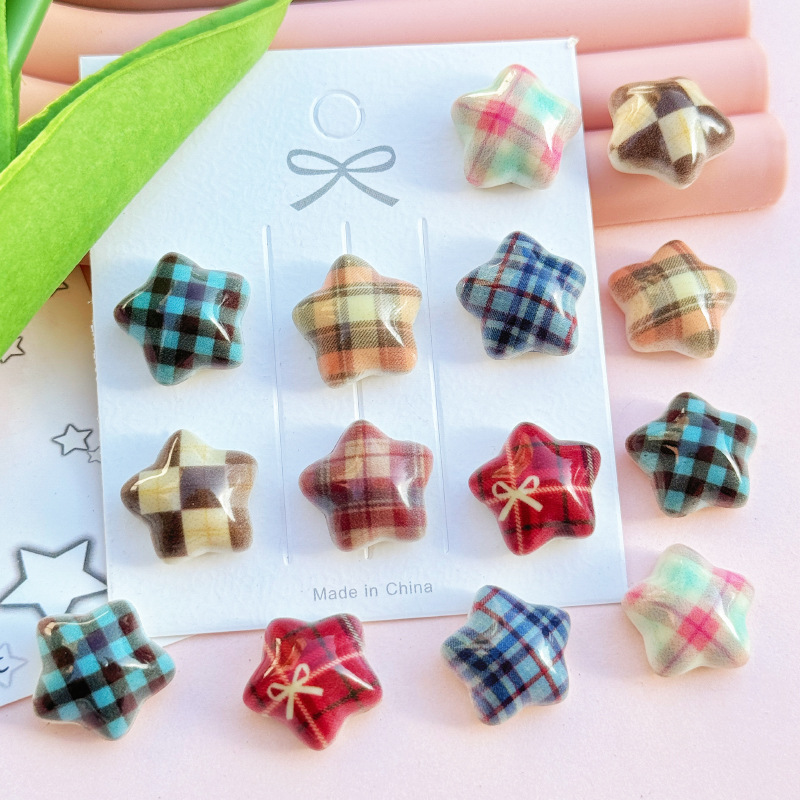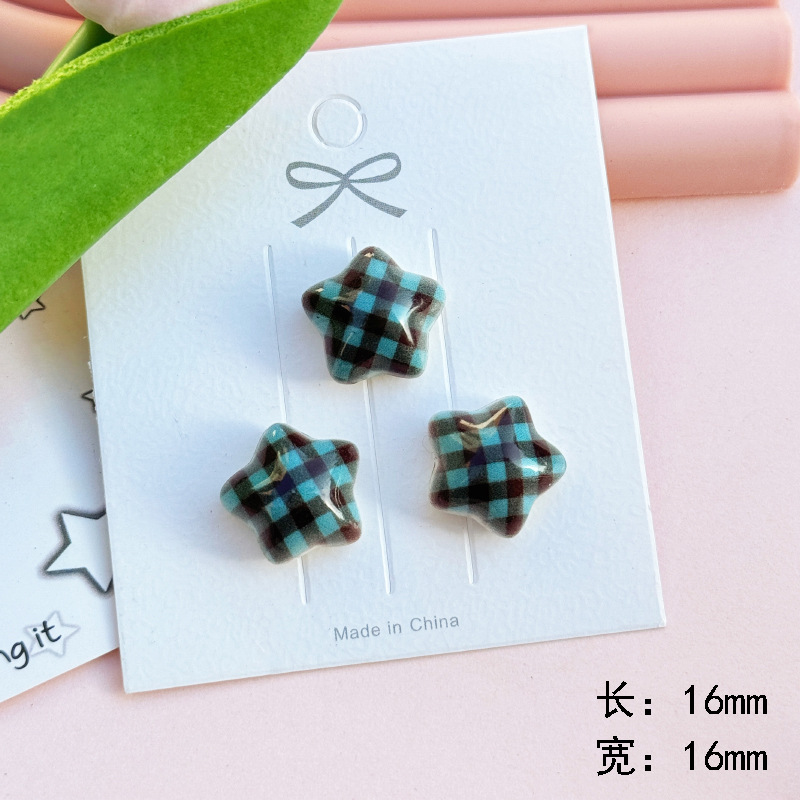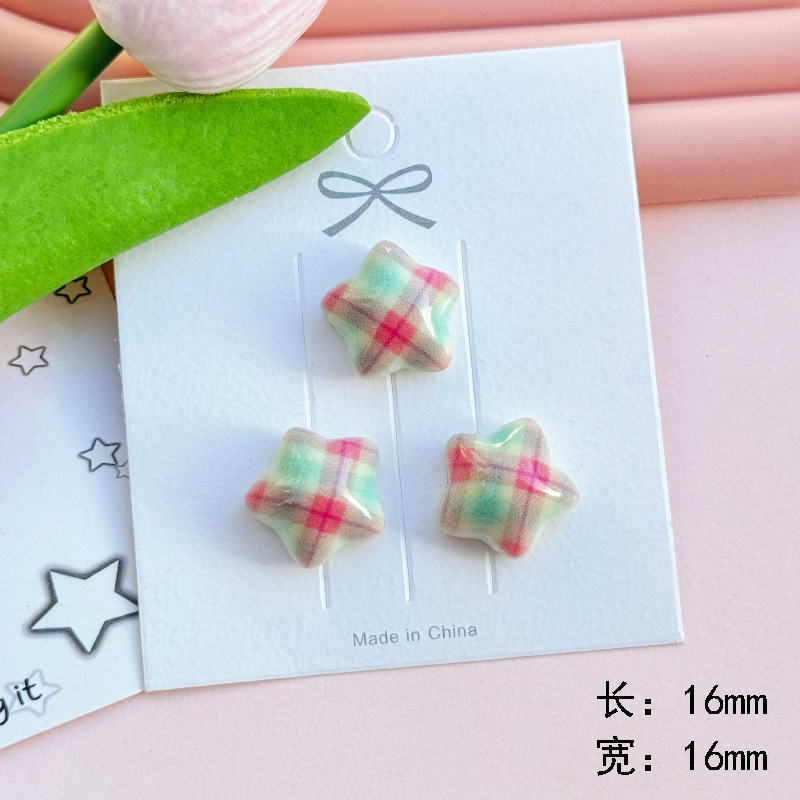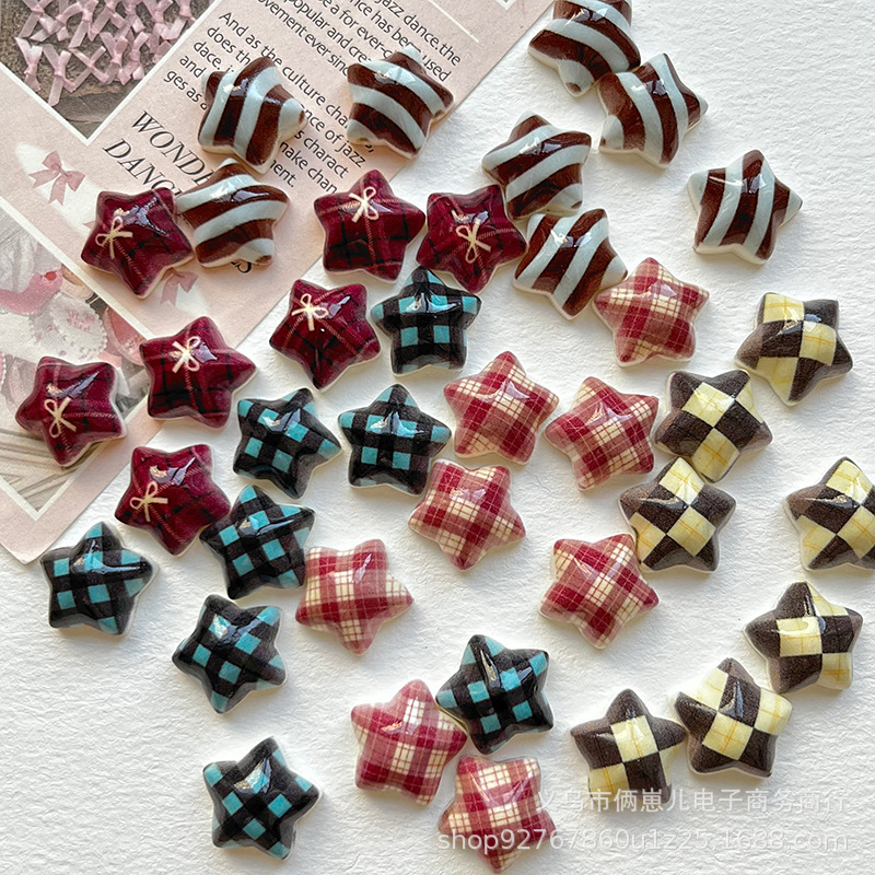 秋冬色迷你格纹五角星树脂配件diy奶油胶手机壳发夹美甲水杯饰品