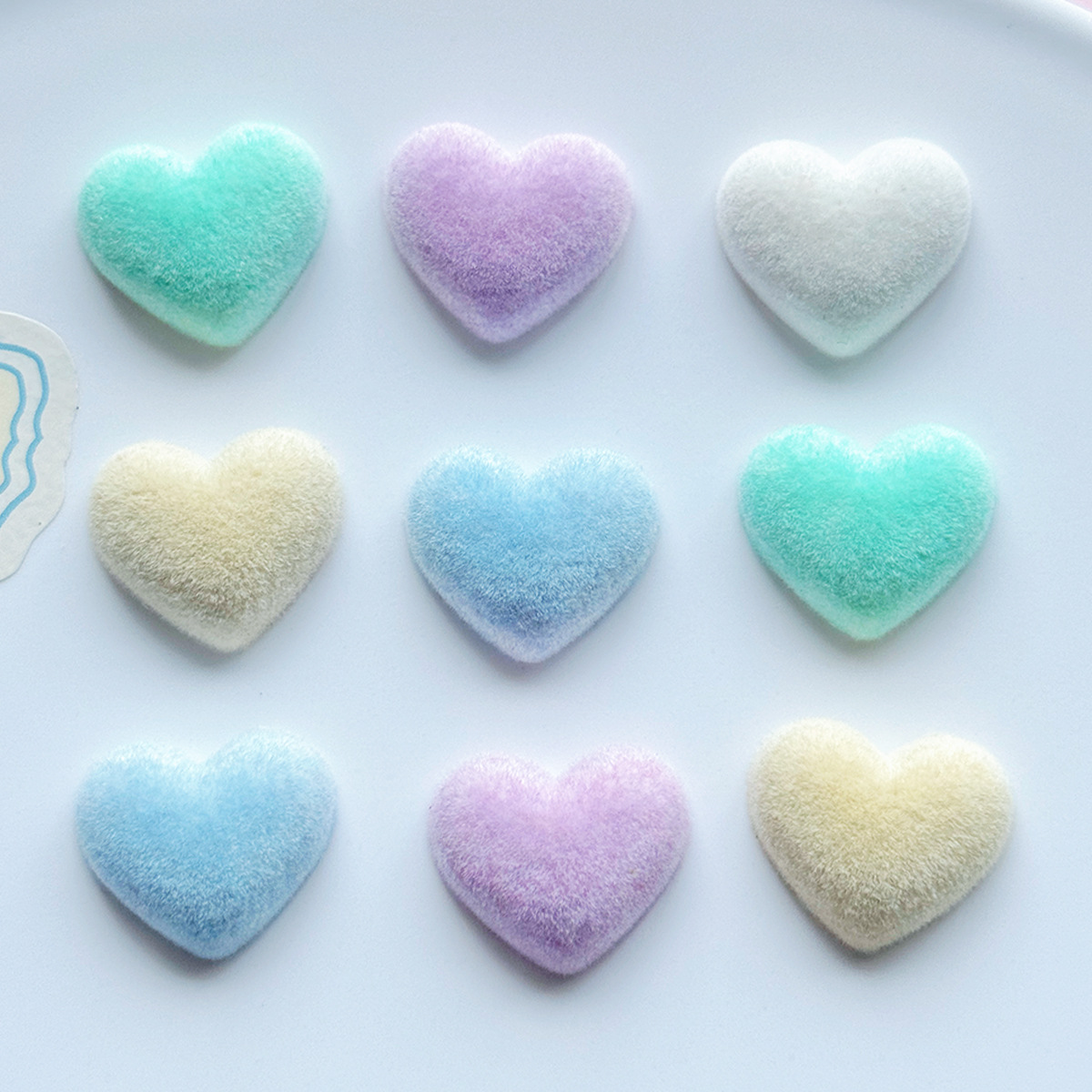 马卡龙色植绒爱心diy树脂桃心形扣子洞洞鞋配饰奶油胶手机壳贴片