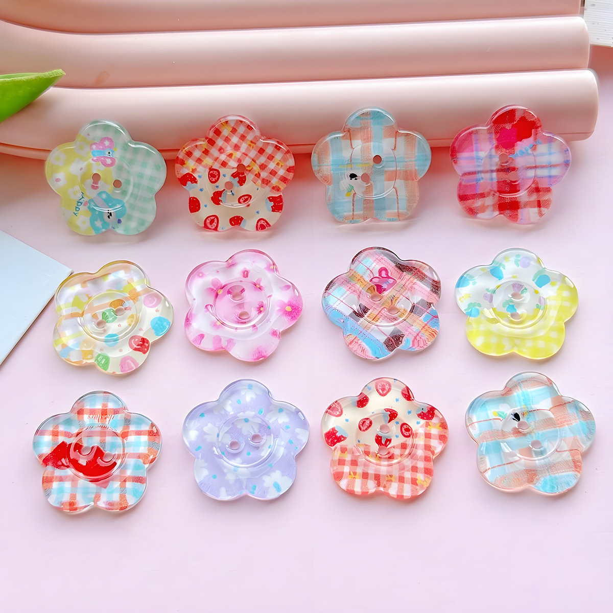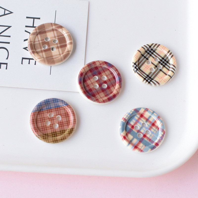 カラープリント格子四眼アップルボタンアクリルdiyアクセサリー携帯電話ケース靴ボタン靴花パッチ