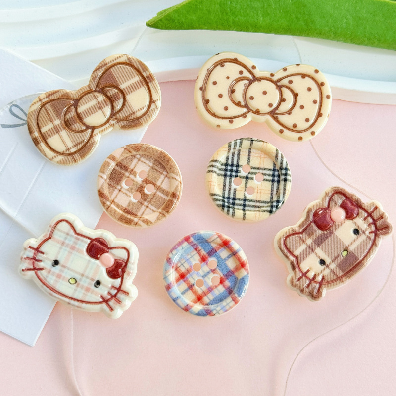 新しい格子縞kt猫愛ボタンアクリルdiyアクセサリーアクセサリークリームゴム携帯ケース髪飾り材料
