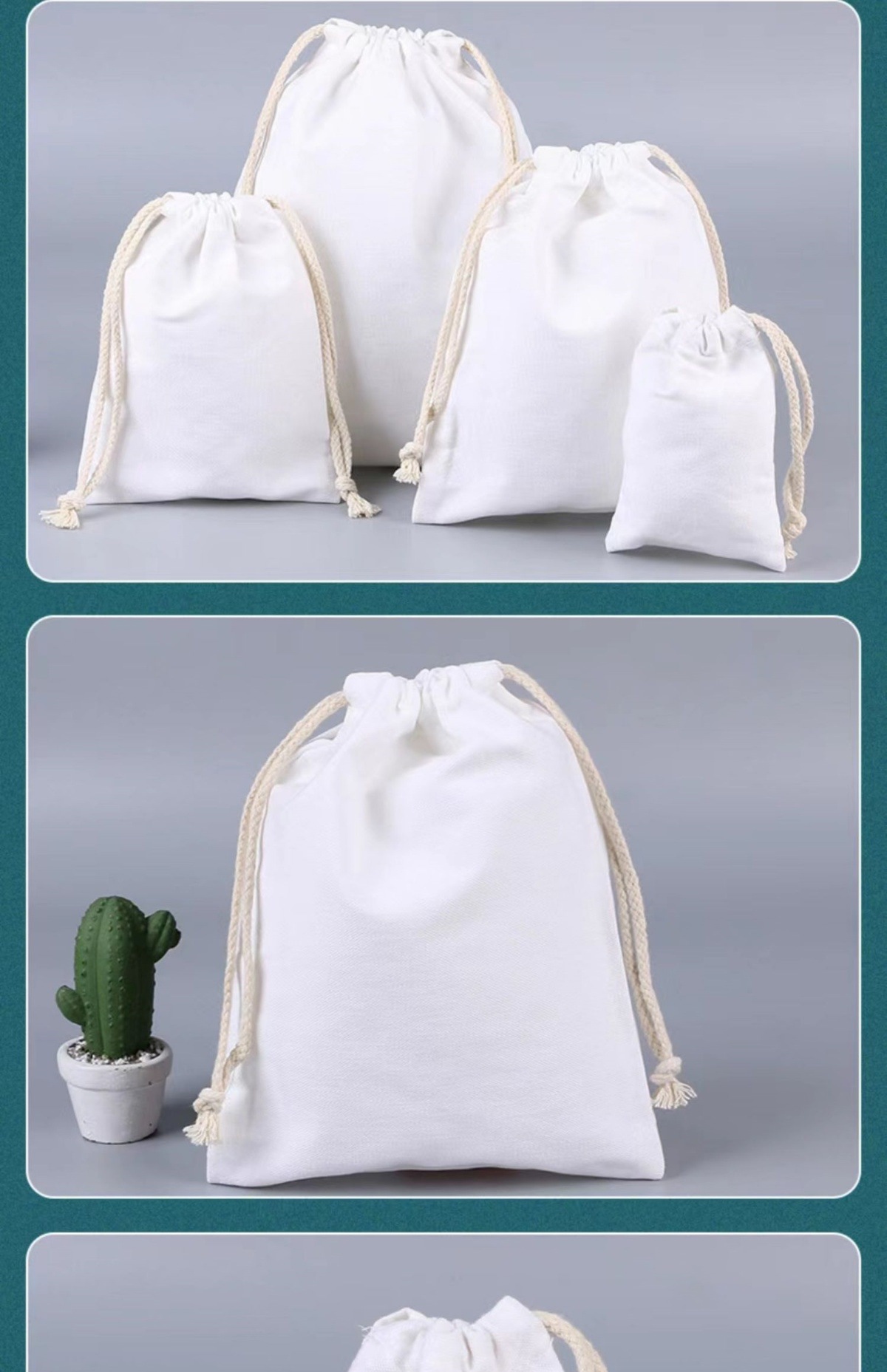 現物の綿100% の環境保護ロープの束口の布袋の宝石のアクセサリーの化粧品の細い綿の麻の香薫の贈り物の包装