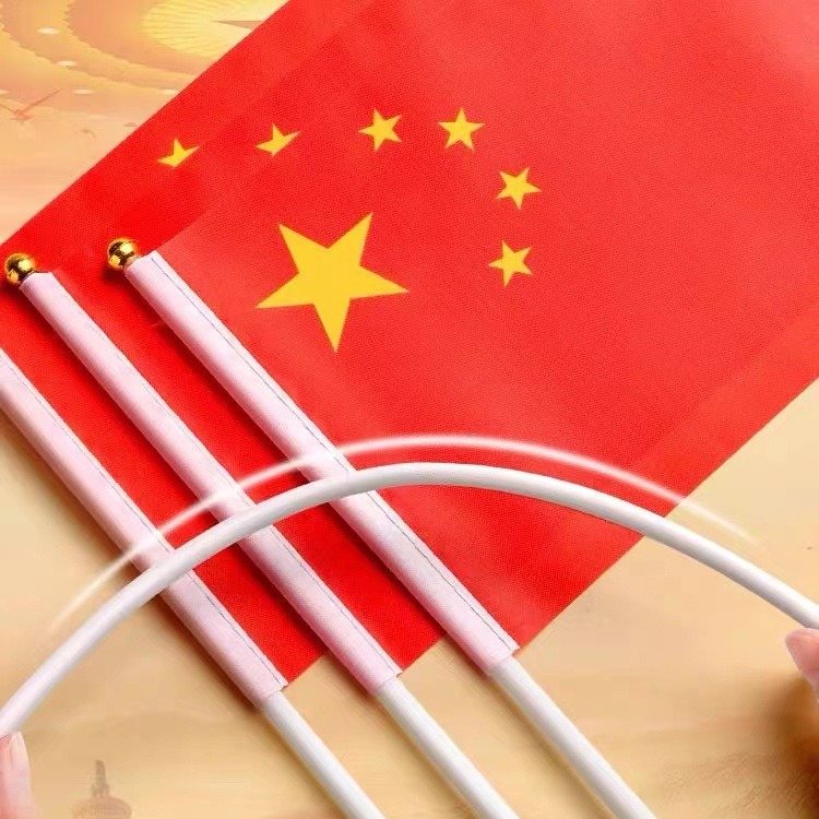 ポールの小さな国旗を着て国旗を手にしてトランペット7号の中国旗を持って国慶節の小型五星紅旗戸を手にした