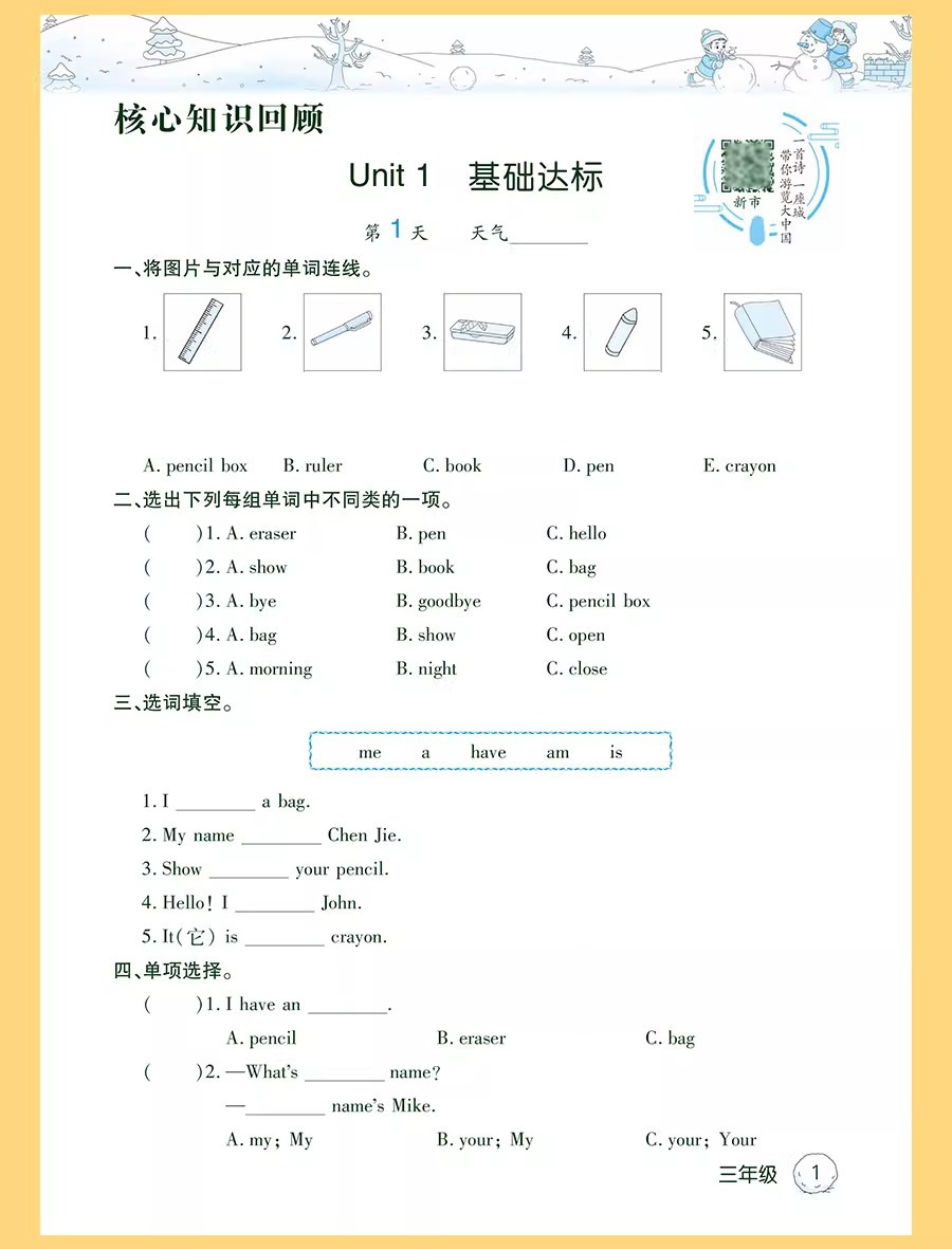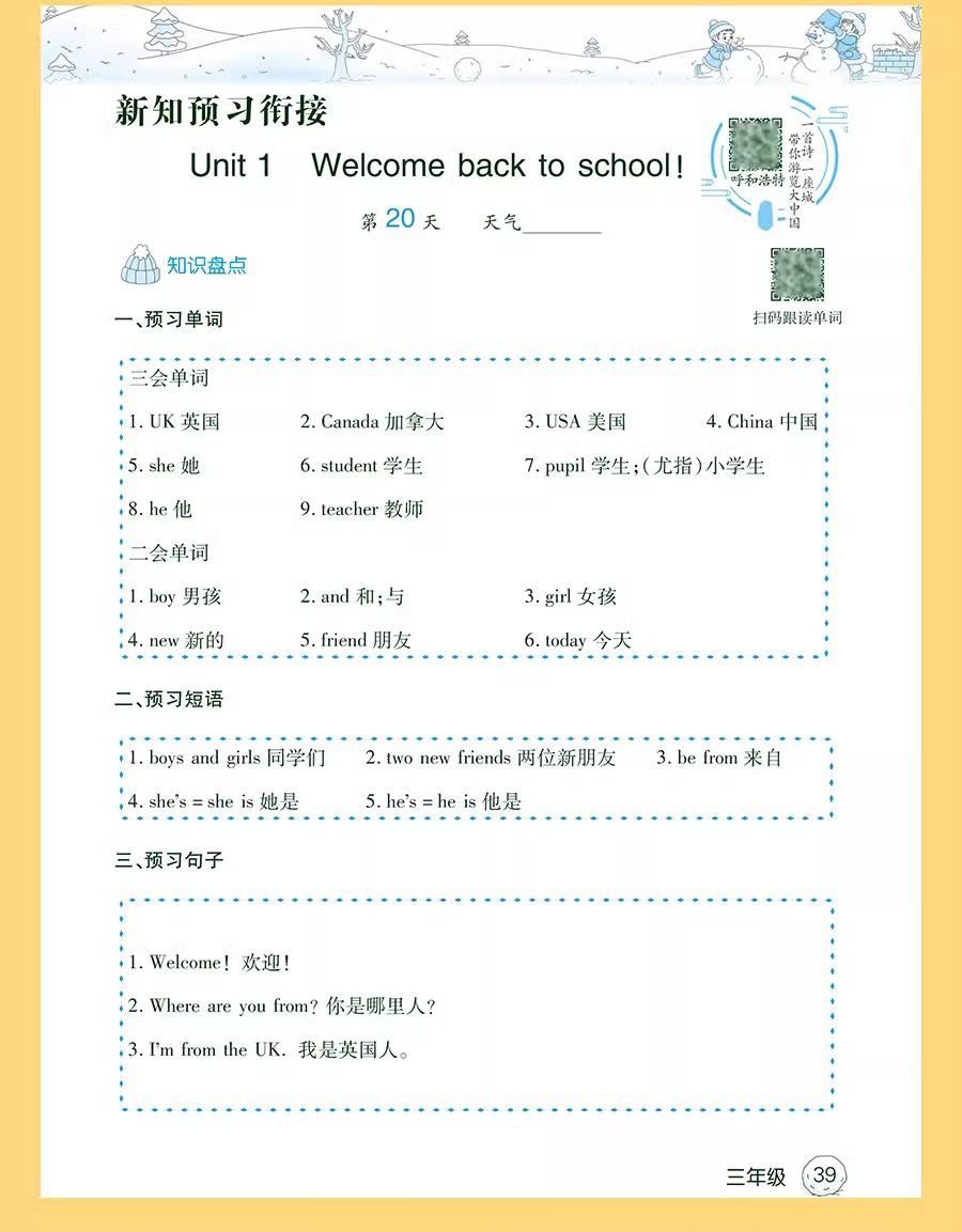 26版 人民教育出版社 冬期宿題 1~6年生向け 中国語・数学・英語 1年生、2年生、3年生、4年生、5年生、6年生向け 中国語・数学