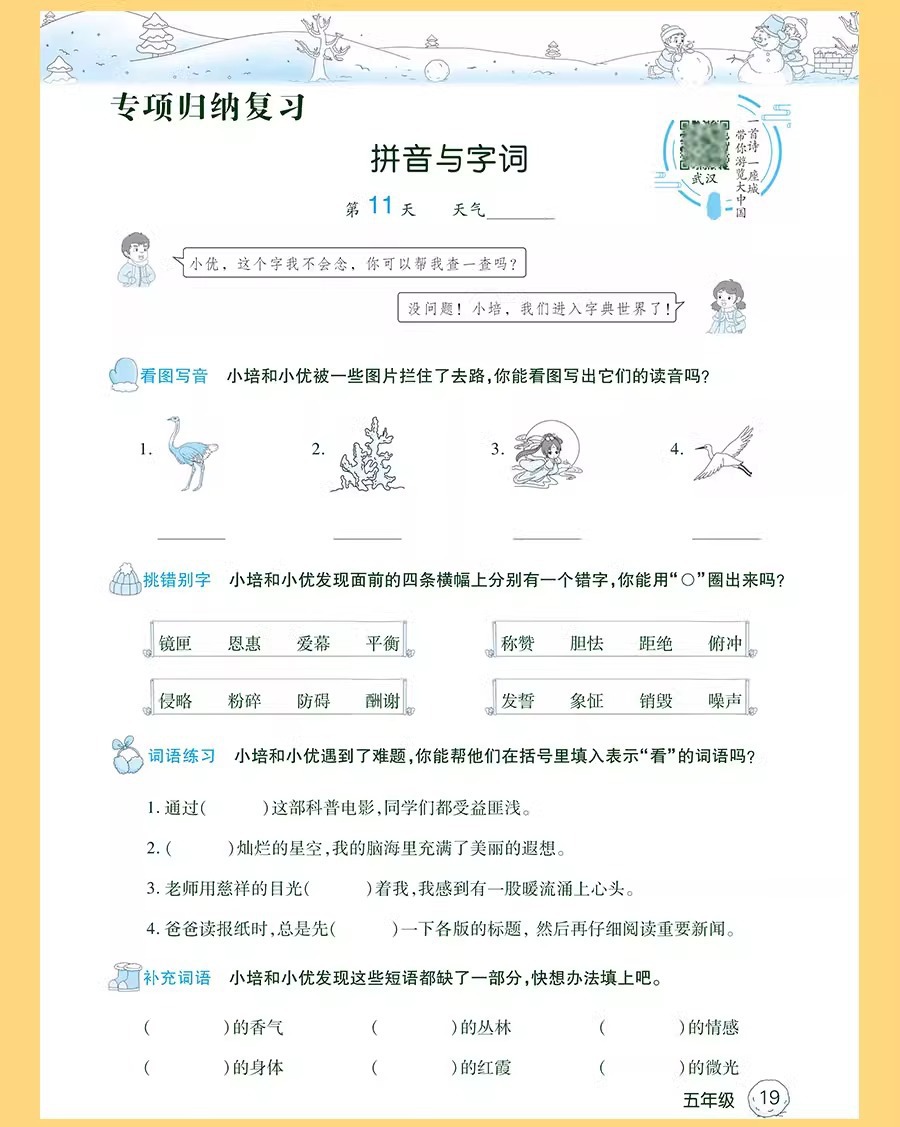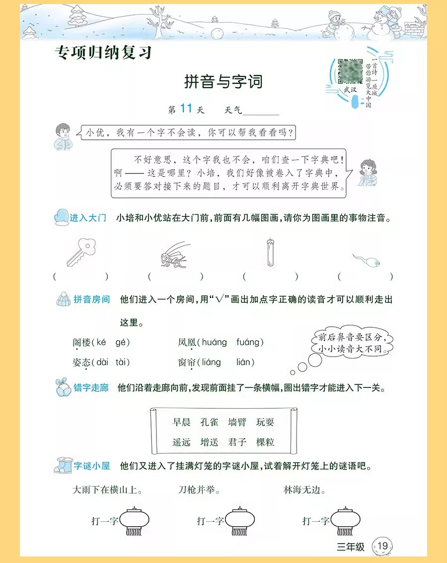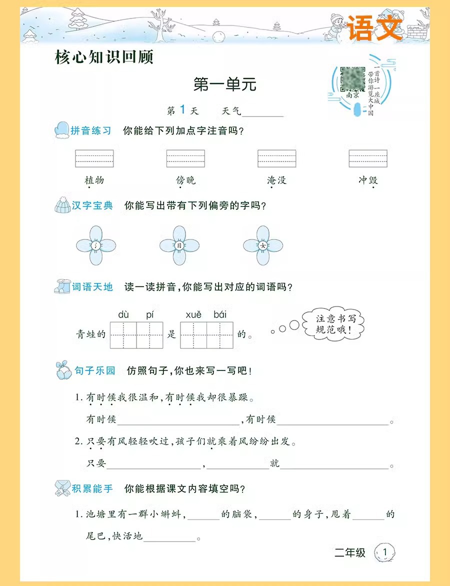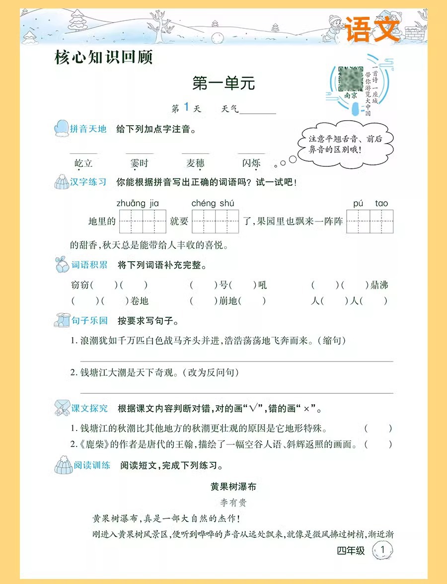 学覇活ページ特別巻はピンインを見て単語の単語を書く訓練文を読んで理解します。