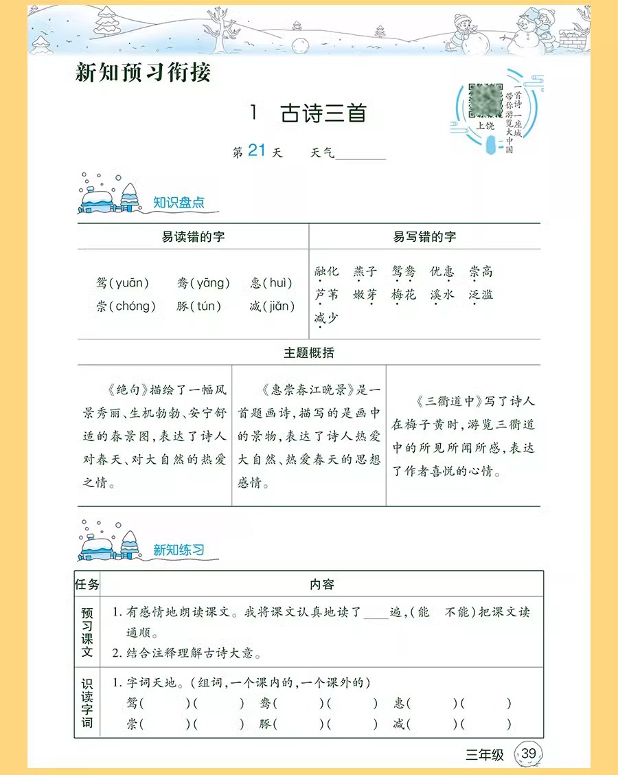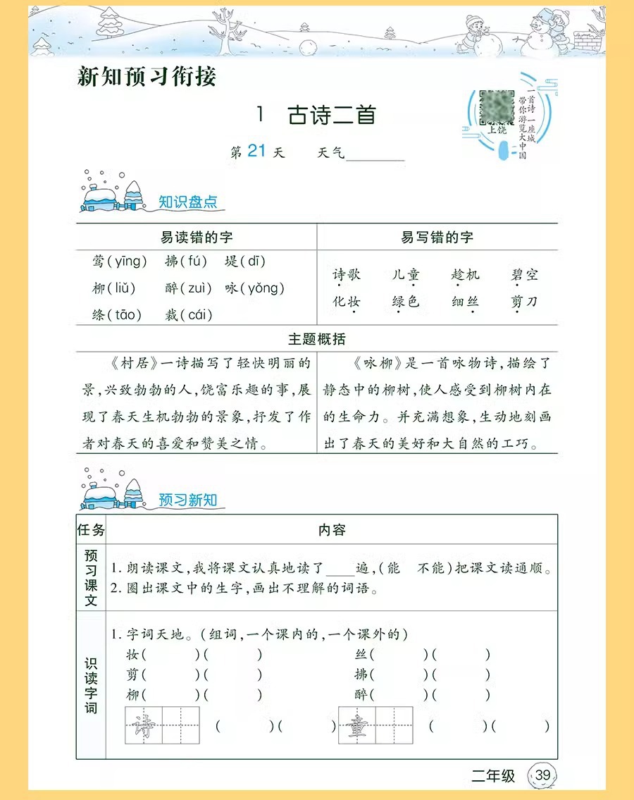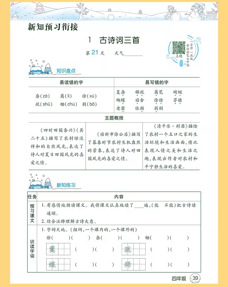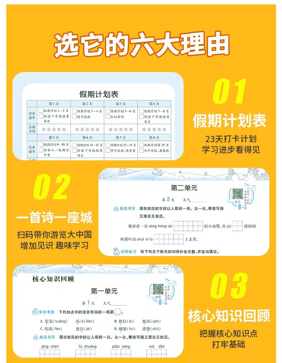 2026年人民教育出版社版、北京師範大学版、江蘇省教育版小学生の冬休み宿題、1年生から6年生までの休暇計画