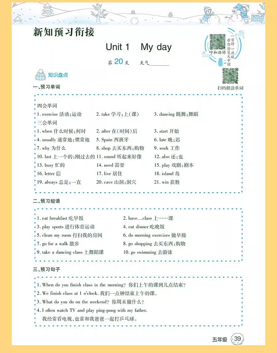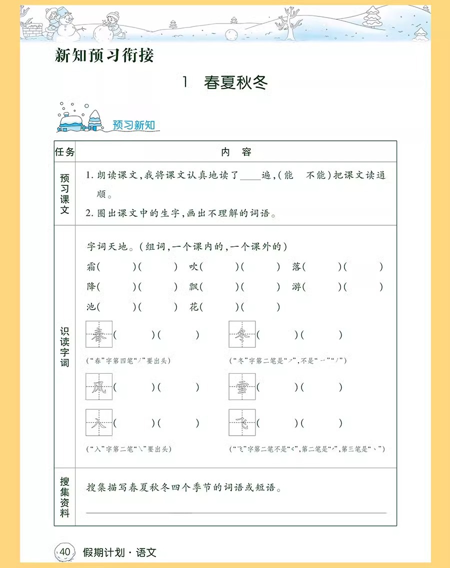 2024人教版北師版蘇教版小学生冬休み作業一二三四五六年級休暇計画