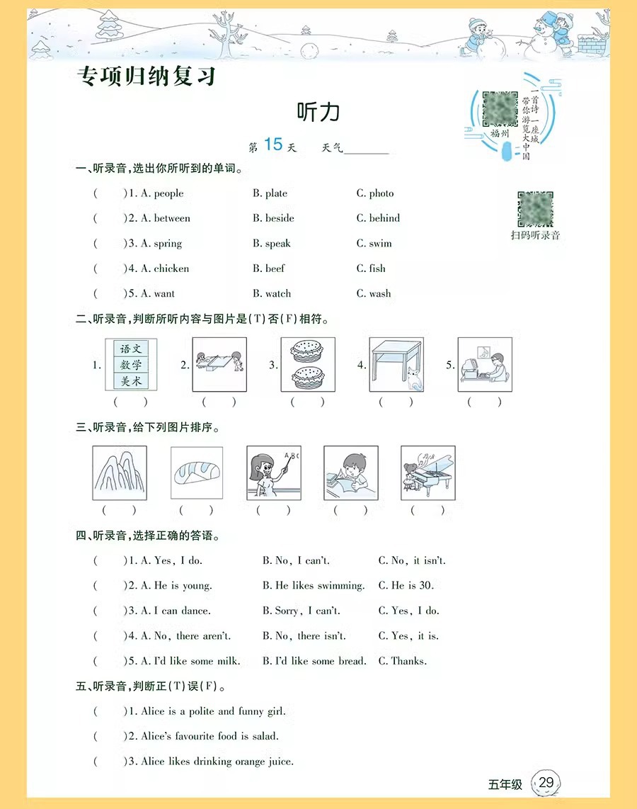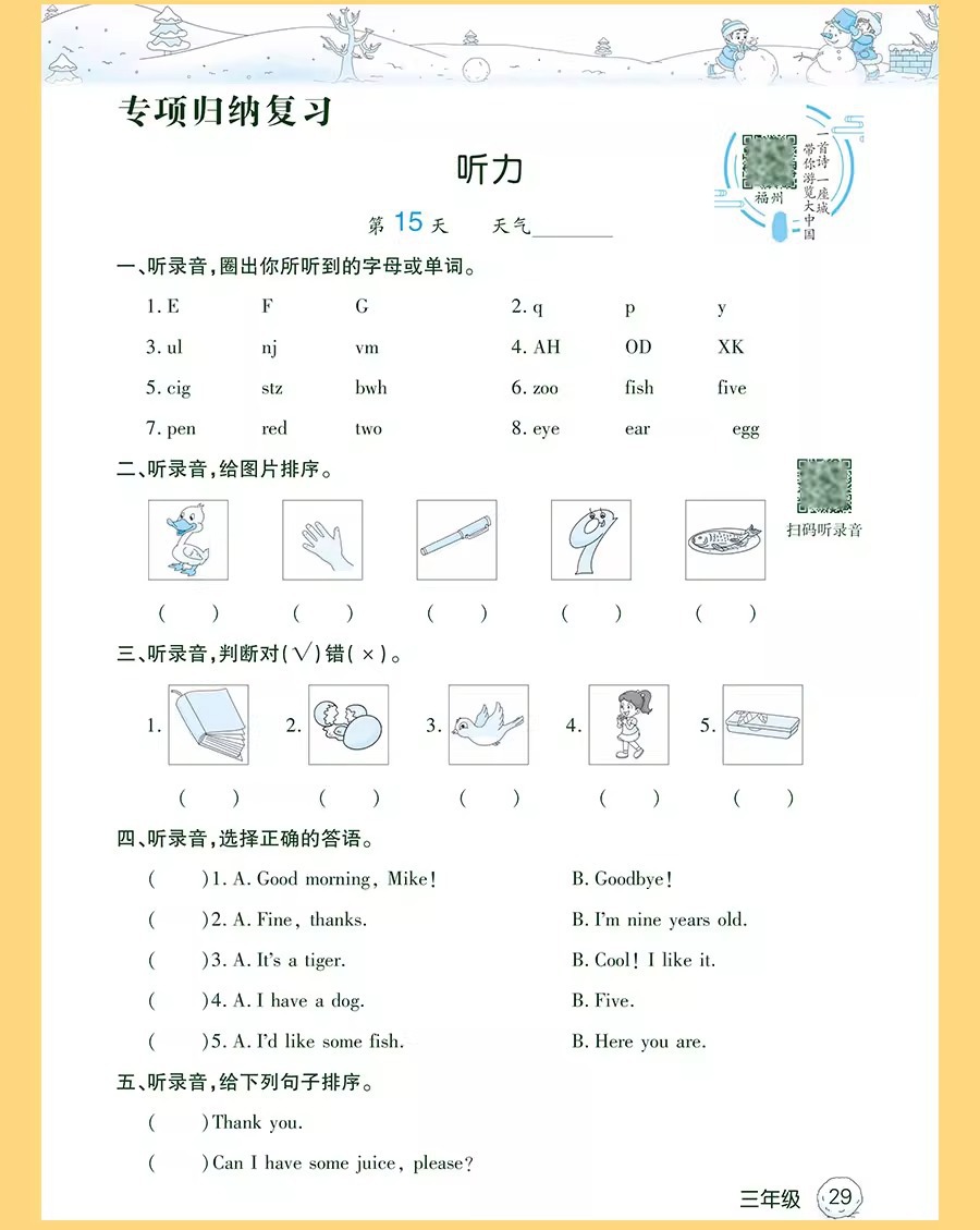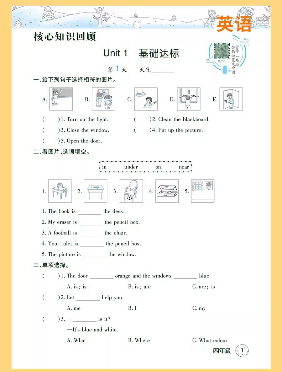 小学校の冬休みの答案用紙の1-6学年の国語の数学の英語の答案用紙の同期の教材の冬休みの宿題の人教版