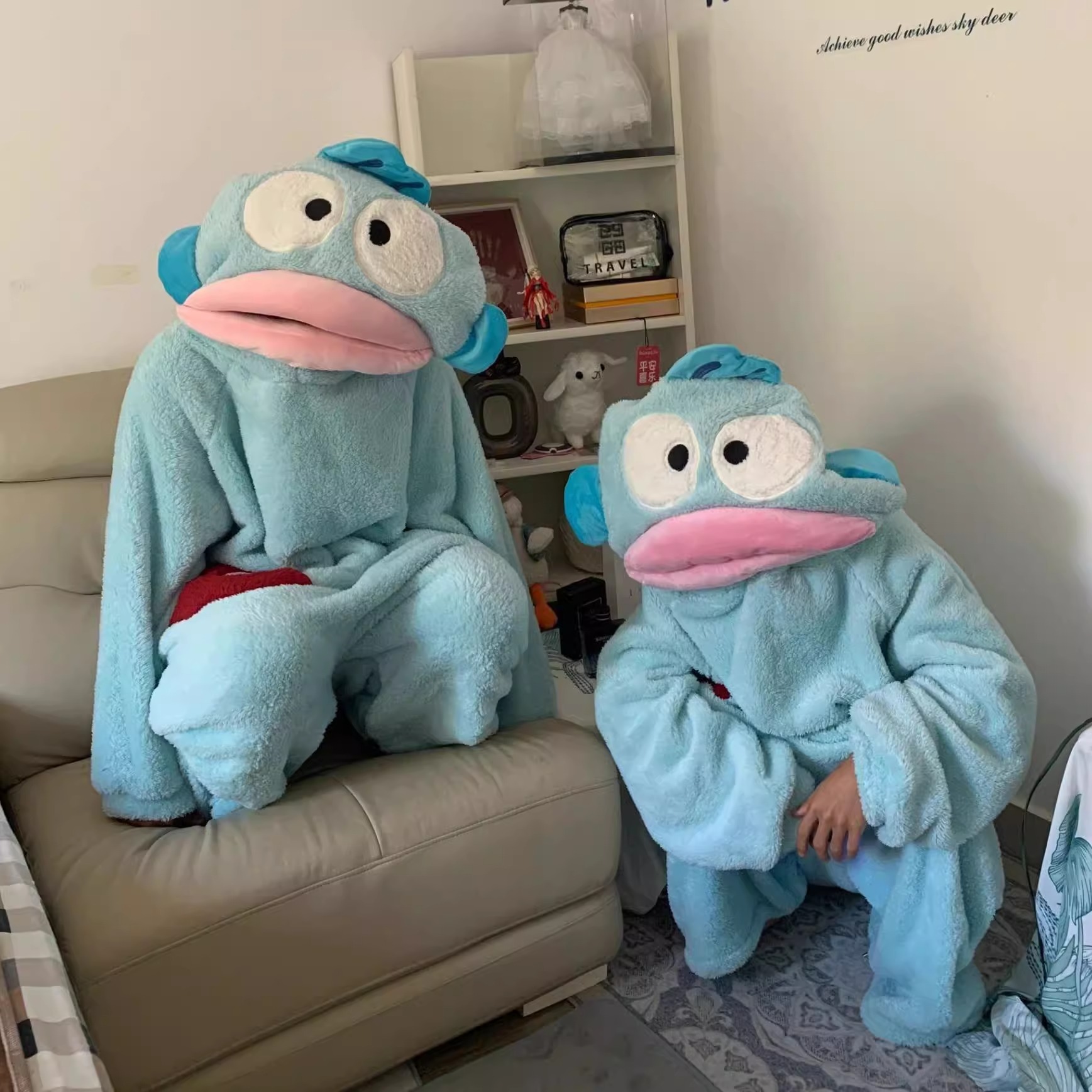 丑鱼汉顿可爱搞怪连体情侣睡衣 冬季沙雕加厚珊瑚绒卡通家居服