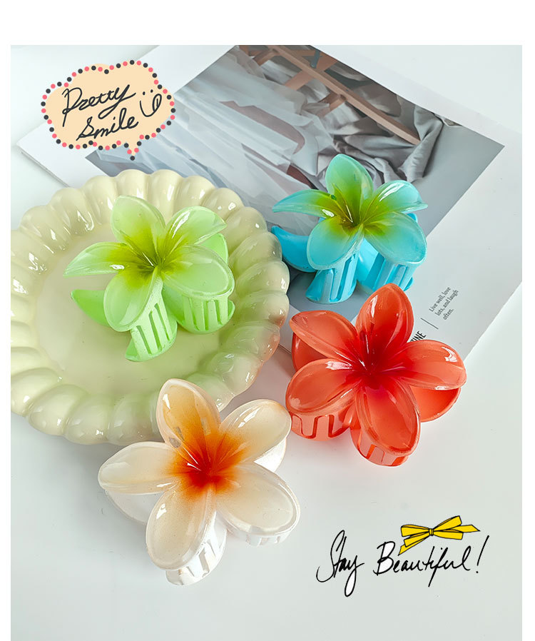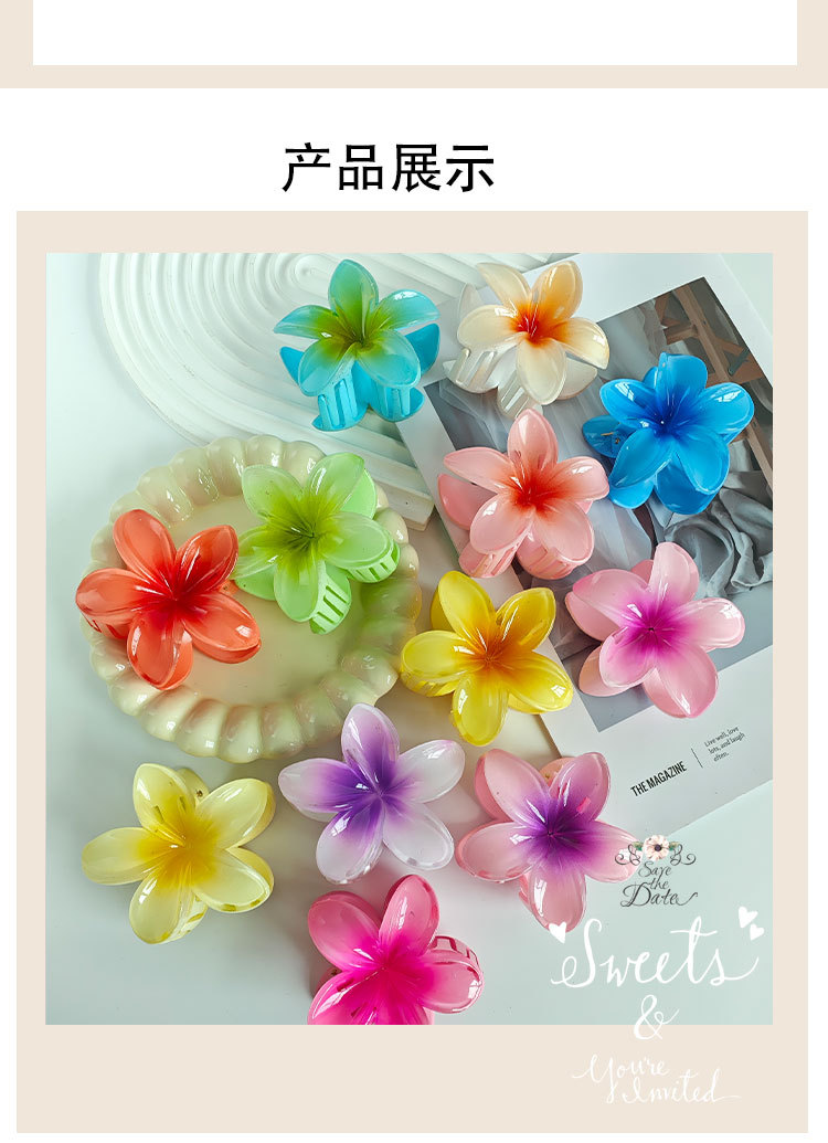 国境を越えた人気のプルメリアクリップ、大きな髪のボリューム、バウヒニアの花、ネット有名人の花のヘアクリップ、女性の後頭部のサメクリップ