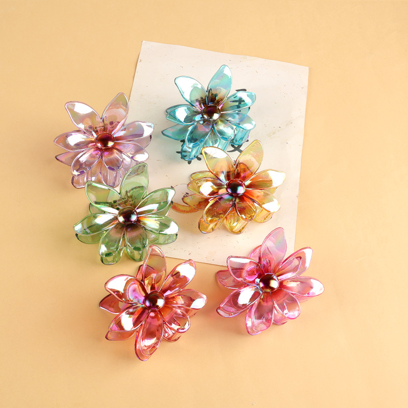 後頭部用の国境を越えた売れ筋のグラデーションフラワークリップ、甘くてファッショナブルで多用途なヘアアクセサリー、透明なカーリーフラワーシャーククリップ