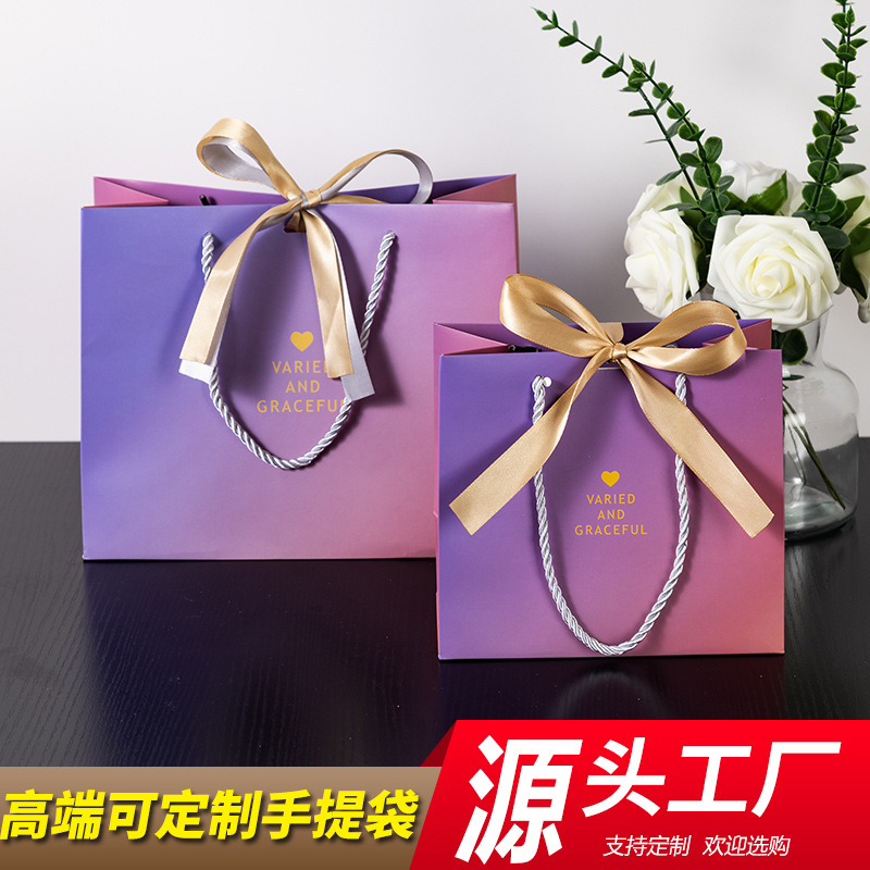 Ins風ギフトバッググラデーション手提げ袋服装紙袋喜糖袋配送リボンマーク包装袋