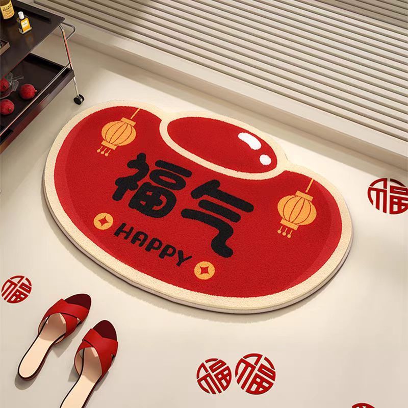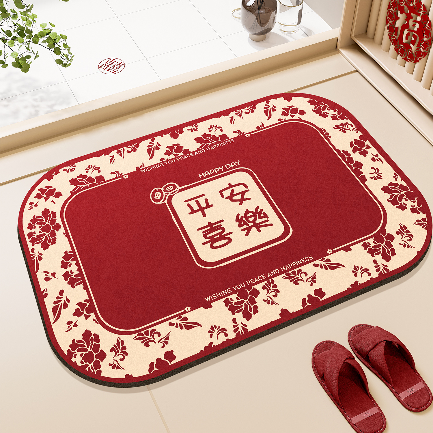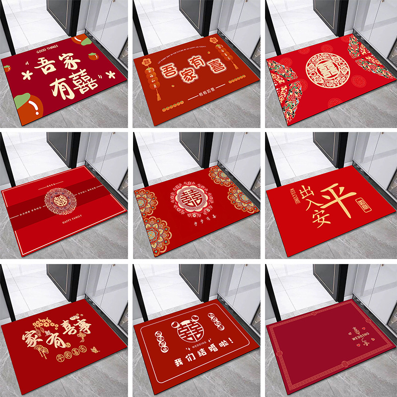 新中国式入戸ドアマット赤いお祝い玄関滑り止めマット家庭用玄関玄関ドアホールマット