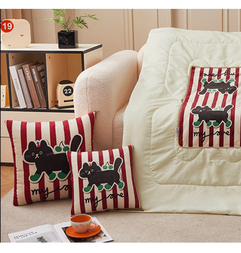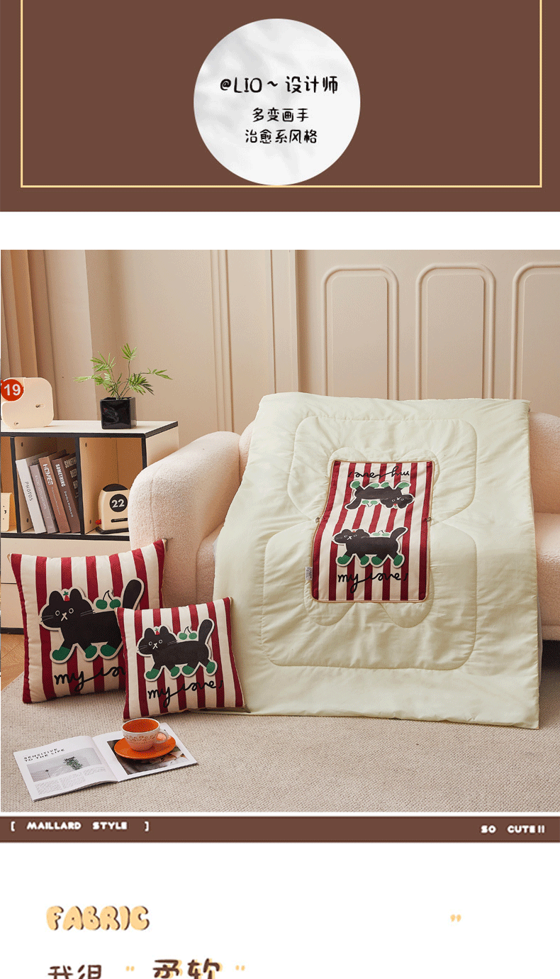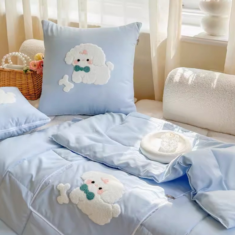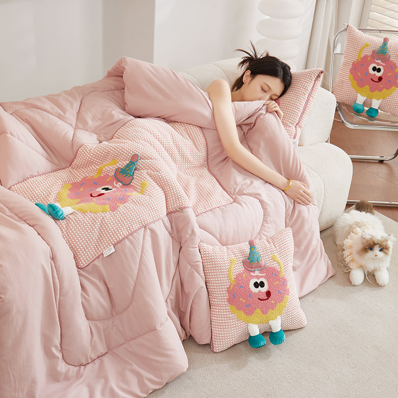 漫画ウォッシュ起毛枕キルト四季兼用パッチ刺繍枕キルトツーインワン昼休みオフィス枕