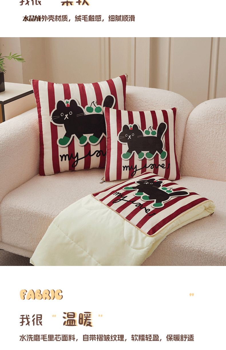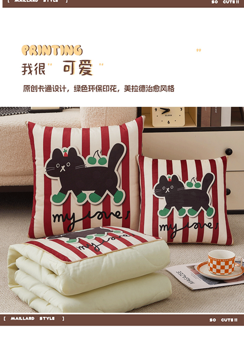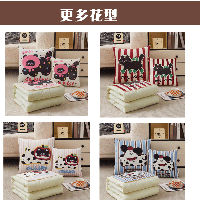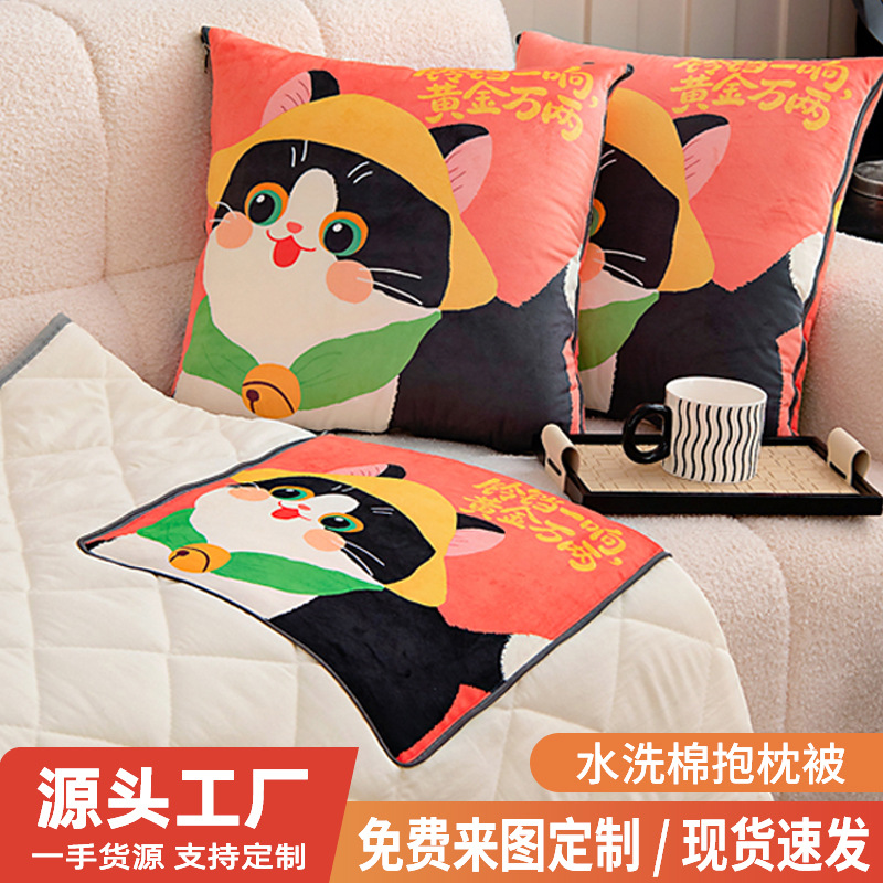 多巴胺卡通多功能水洗棉抱枕被二合一来图定制logo车载靠垫被两用