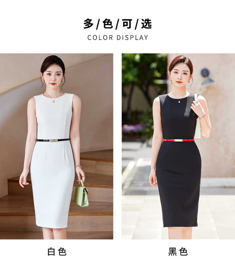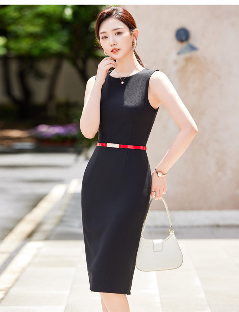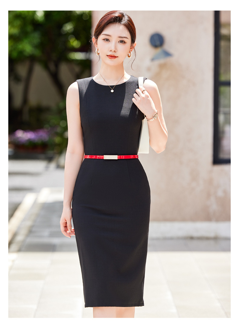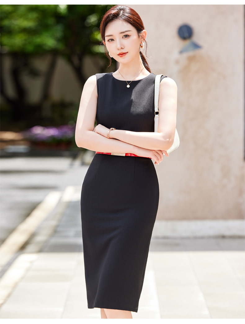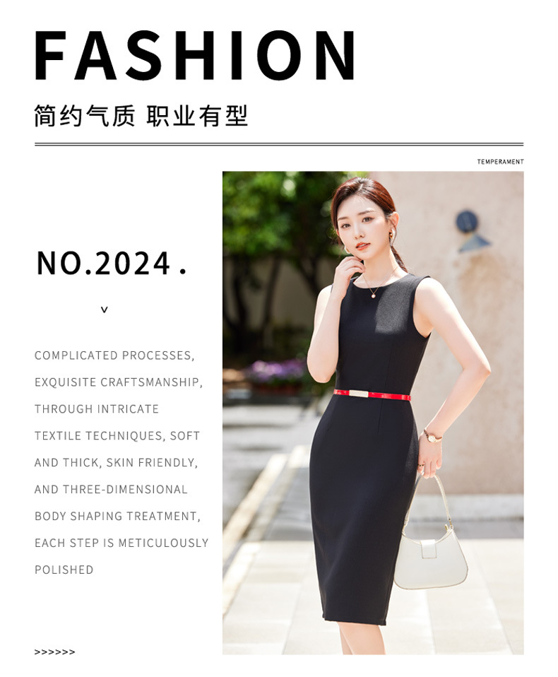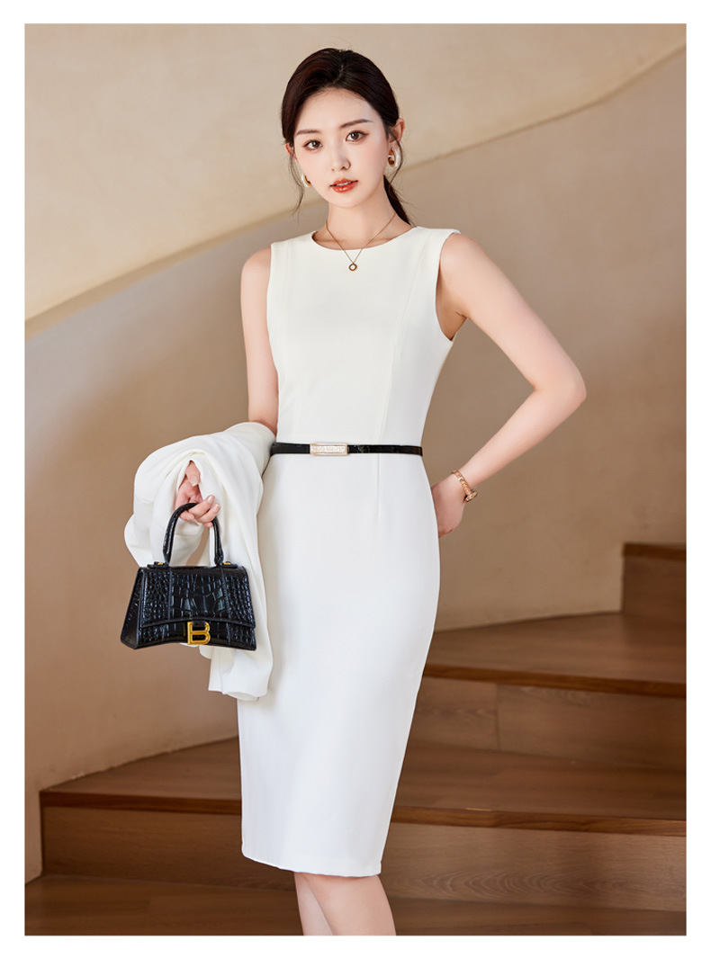 2024春秋新ビジネス通勤丸首ワンピース高級感気質正式インナーウエストベストスカート