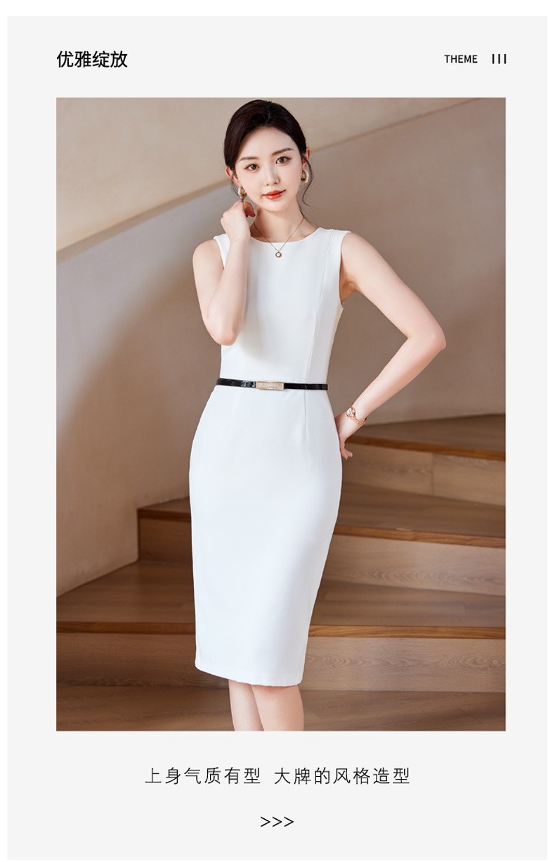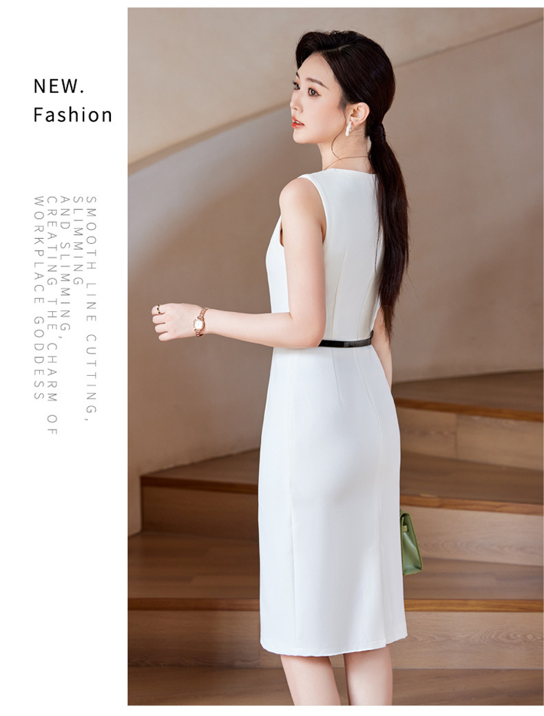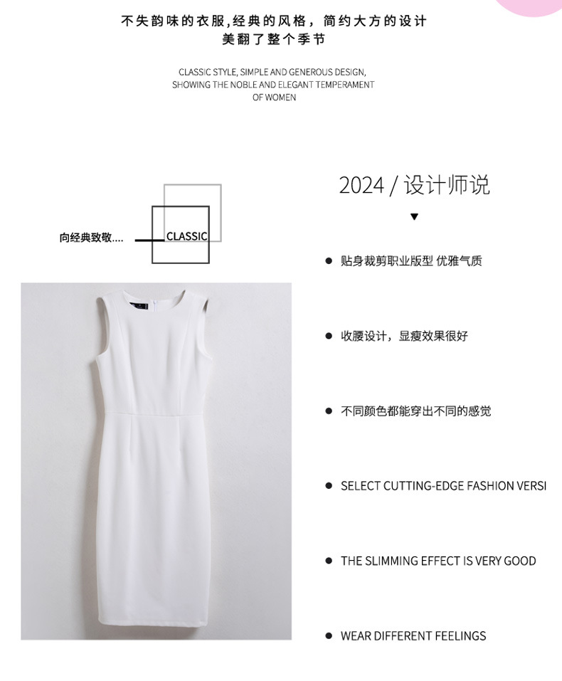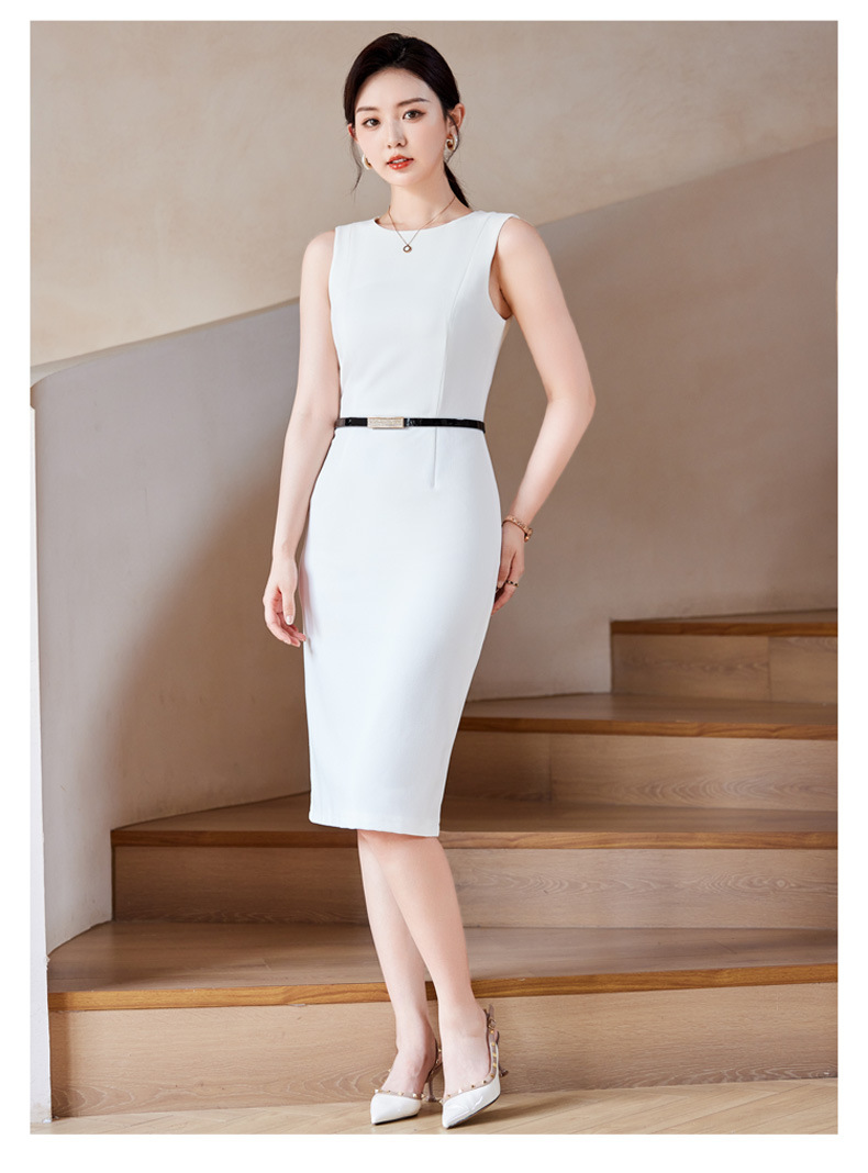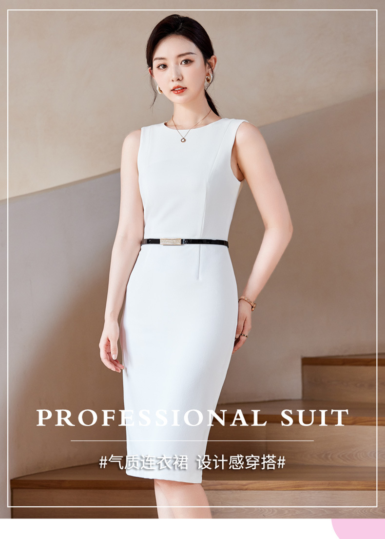 2024春秋新ビジネス通勤丸首ワンピース高級感気質正式インナーウエストベストスカート