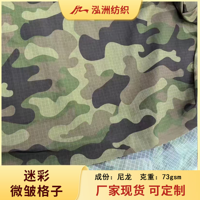 スポットストーム迷彩ナイロン格子生地微かシワトレンド生地耐摩耗性アウトドア服帽子バッグ布帛