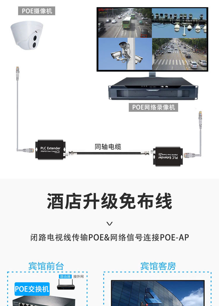 POEネットワーク同軸延長器POE ipネットワーク信号拡大延長送信機無給電無配線ケーブル