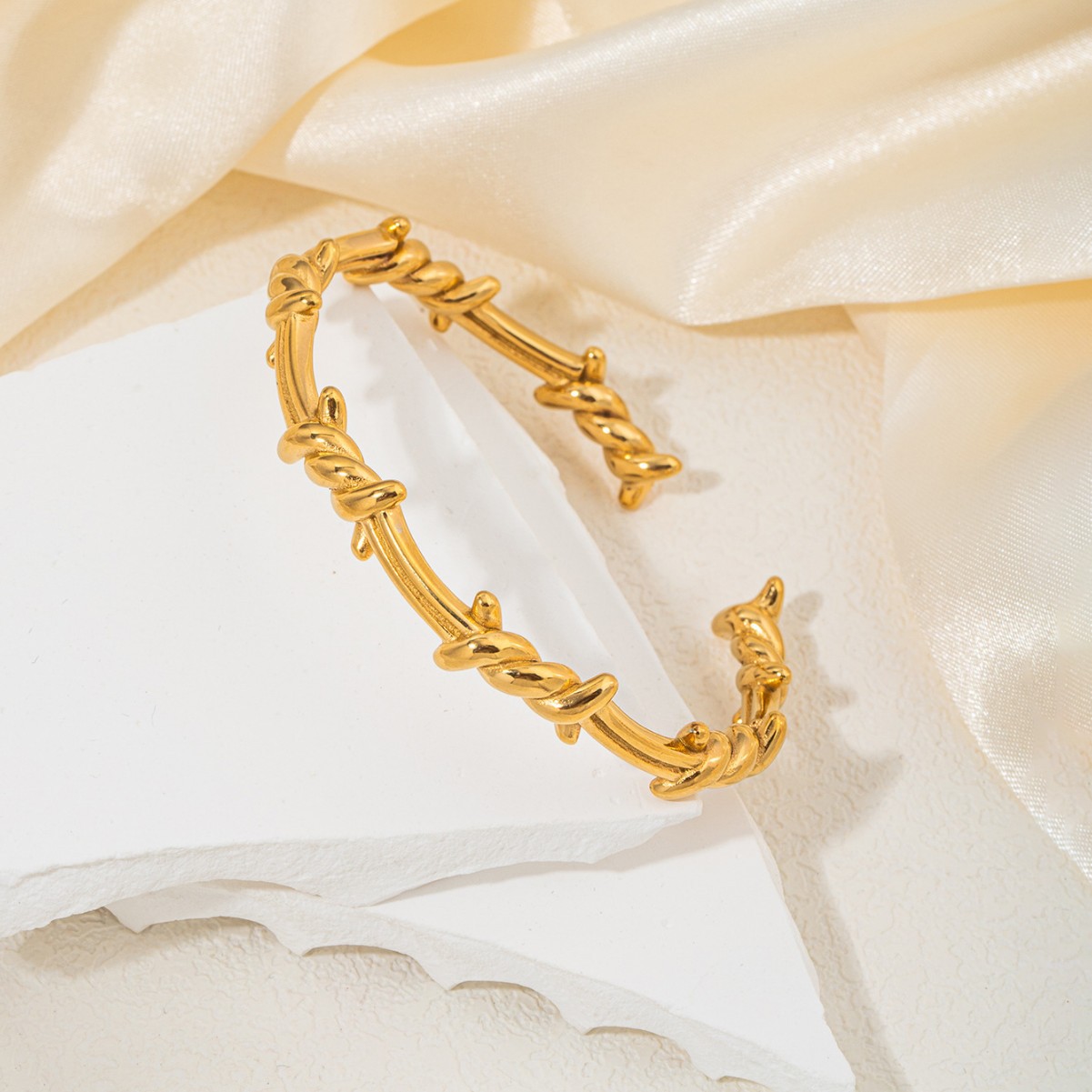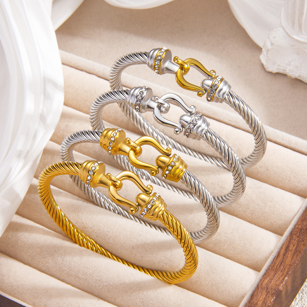曲げフックのブレスレットチタン鋼18k金メッキ麻花のブレスレット欧米はダイヤモンド女性の間の金のブレスレットを入れることができます。