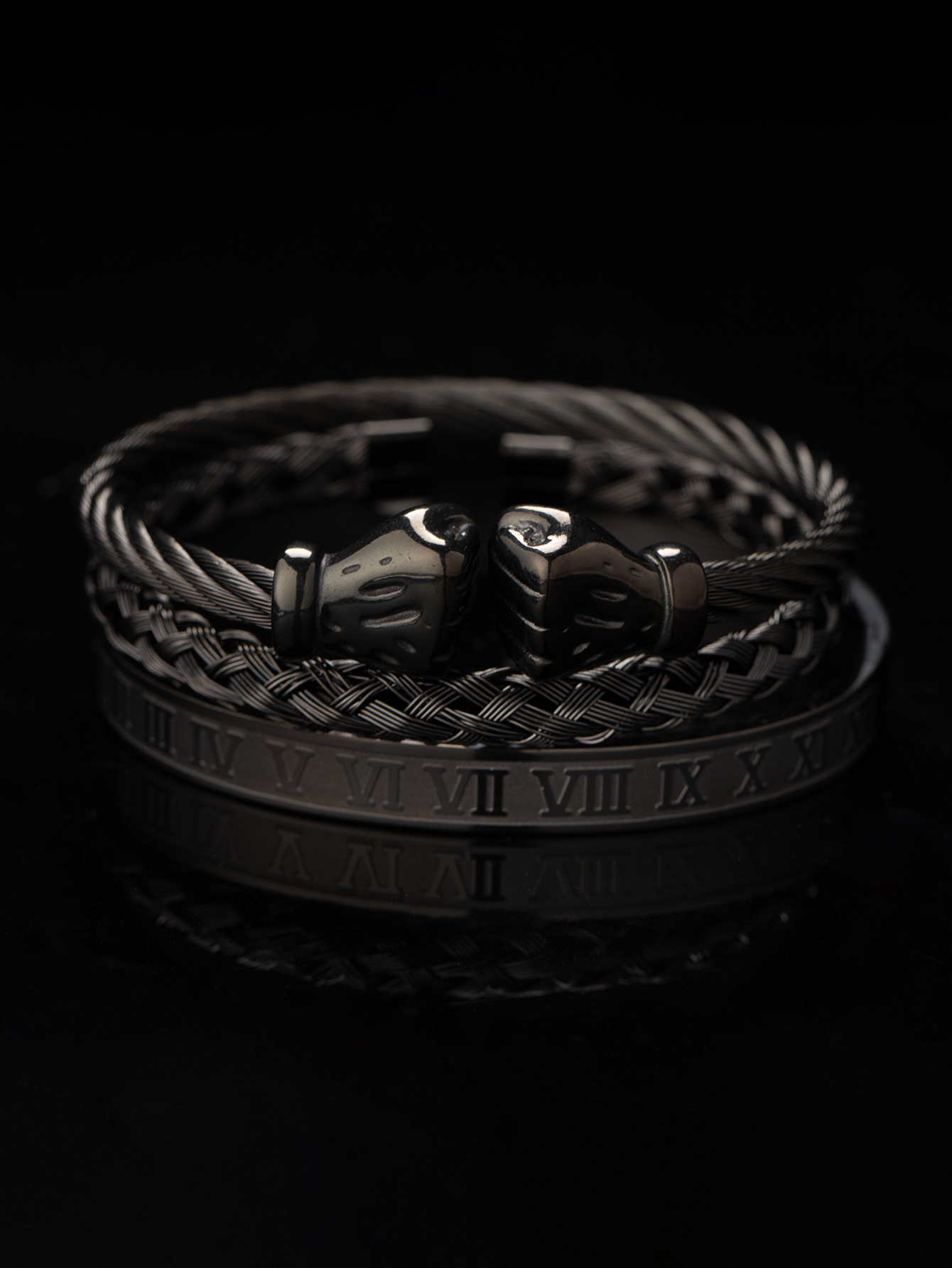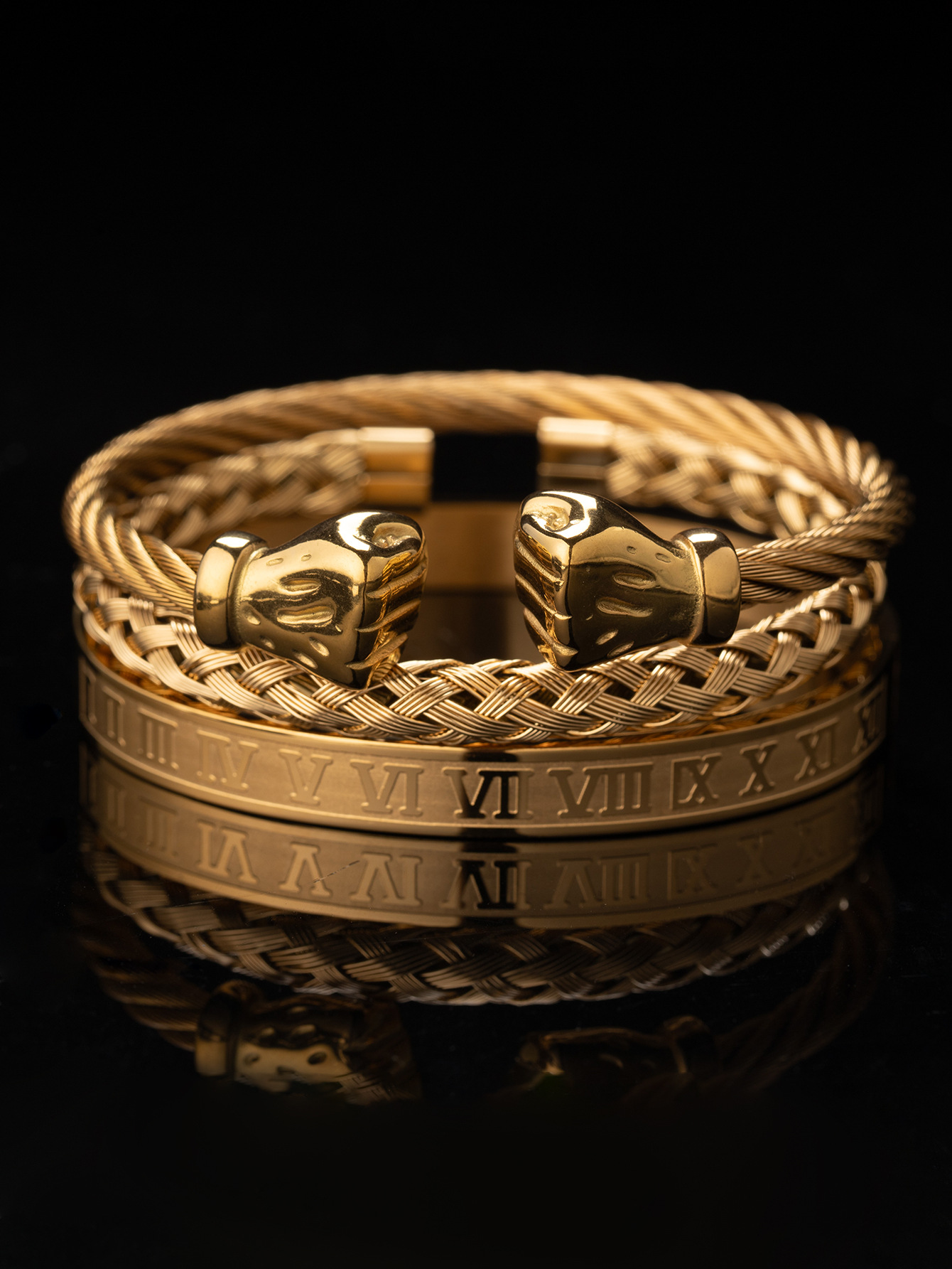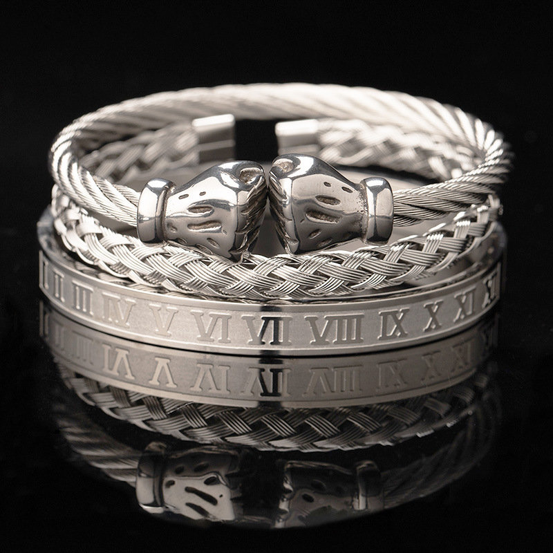 欧米の起爆ステンレスローマのブレスレット豹頭皇冠編みブレスレットセット麻花パンク風ブレスレット