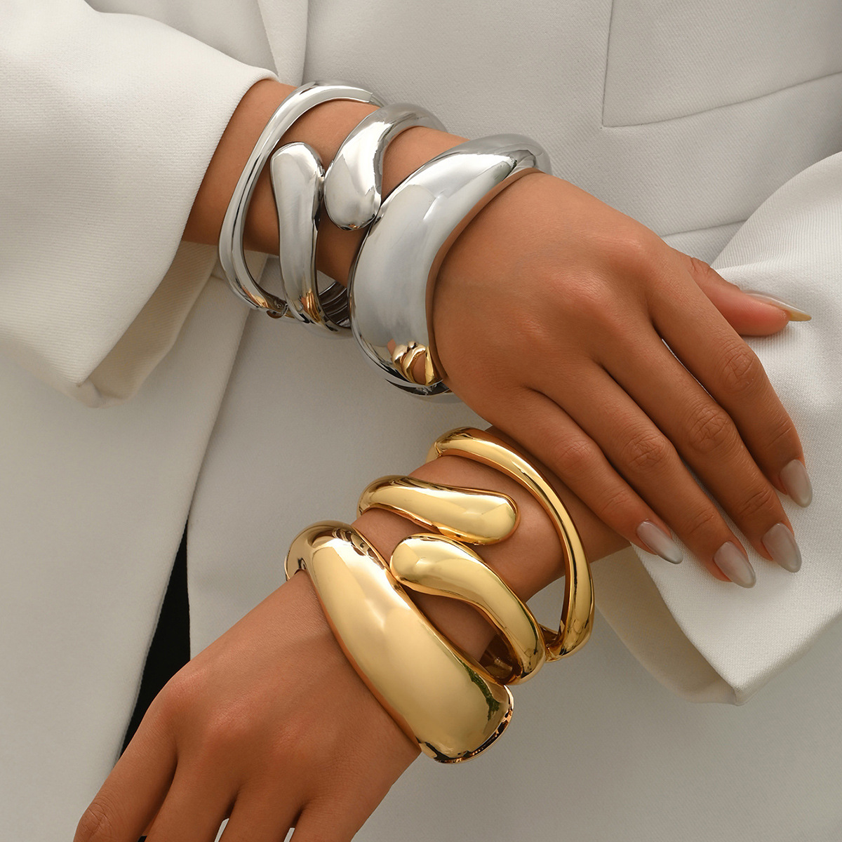 欧米の越境風の女性の腕輪の小さい大衆の軽豪華な設計の幾何学の18kの光沢の手環の個性の素の輪の装飾の女性