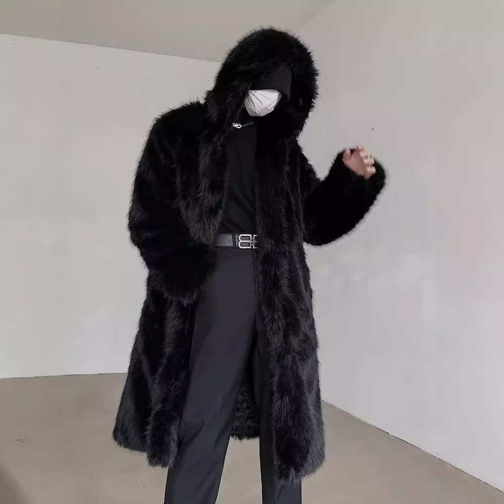 痞帅2024冬秋冬男性の新型キツネは毛皮のコートの毛皮のファッションを真似て保温コートを厚くした