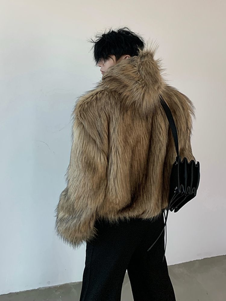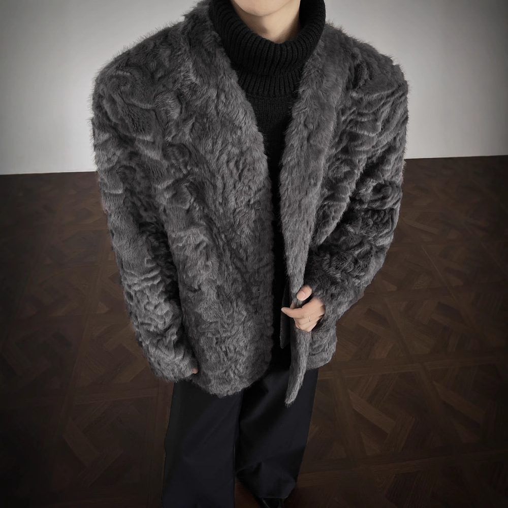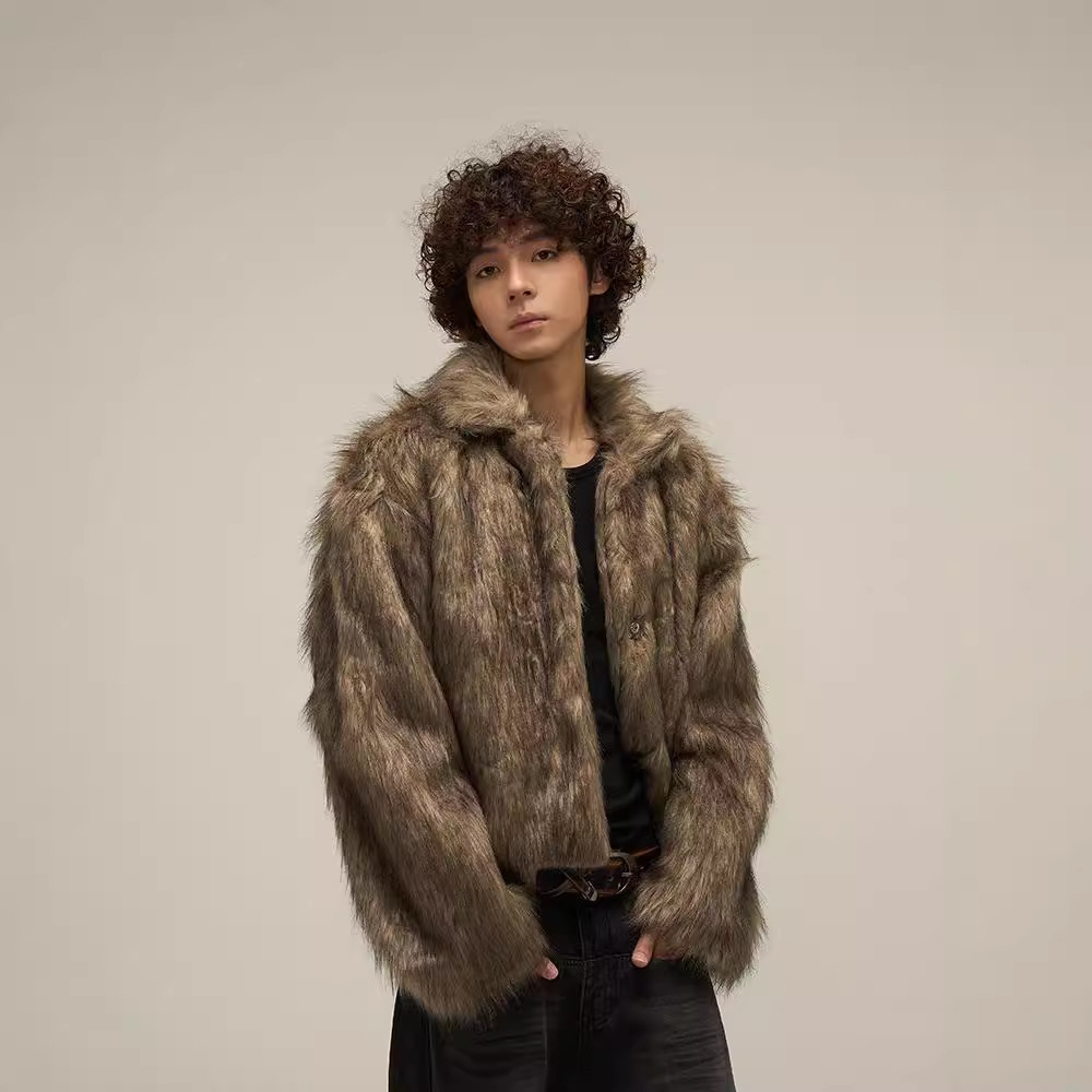 2025冬季新款防皮草外套潮男韩版时尚宽松百搭休闲毛毛绒皮草大衣