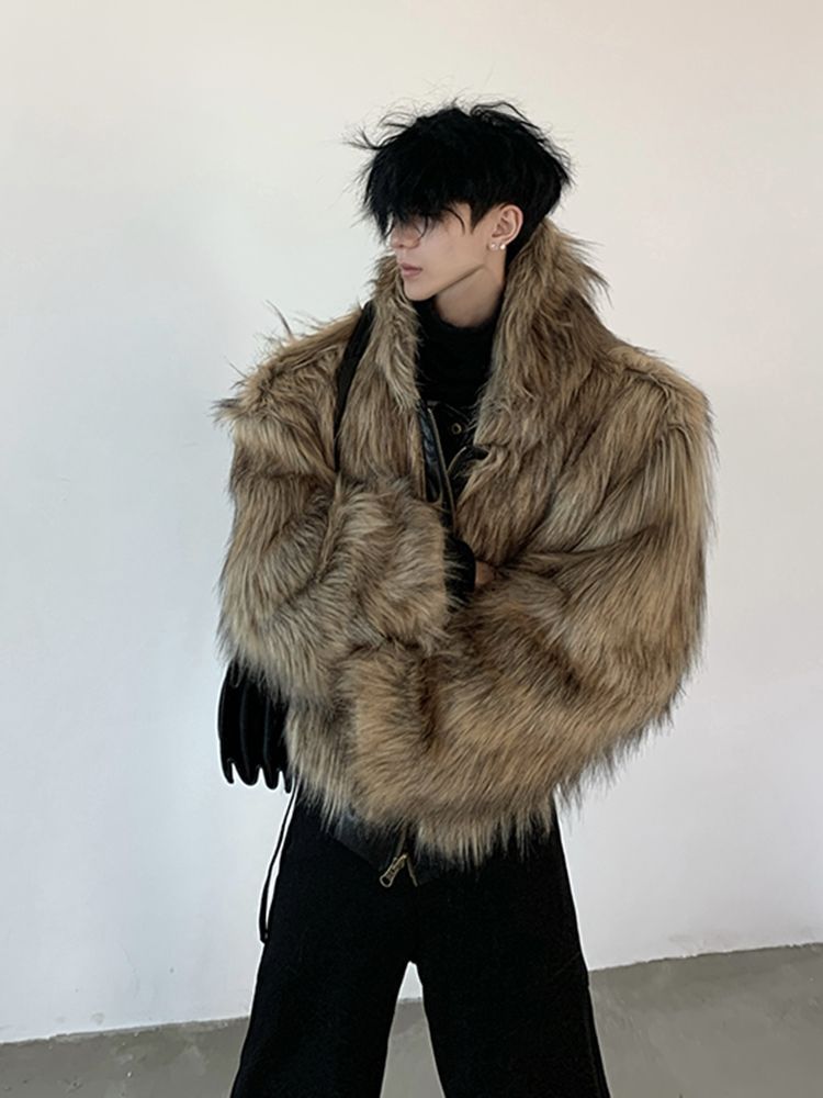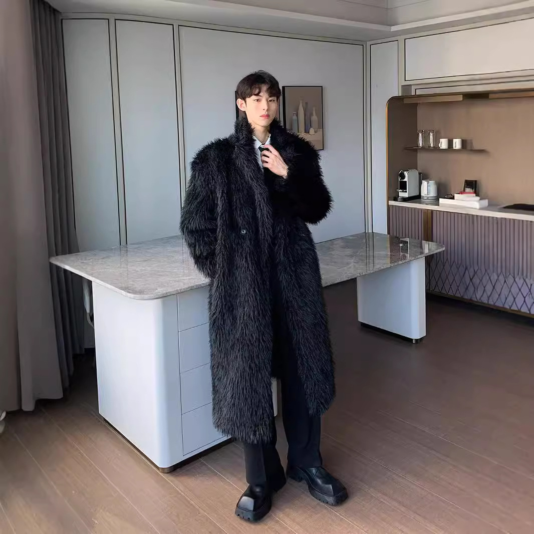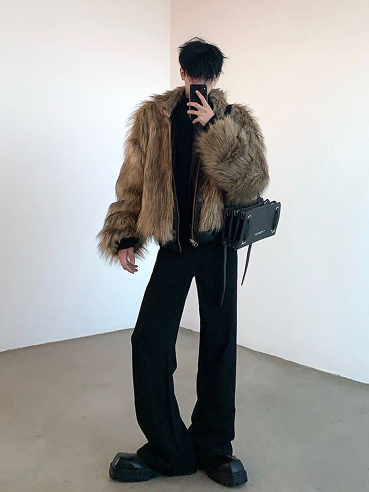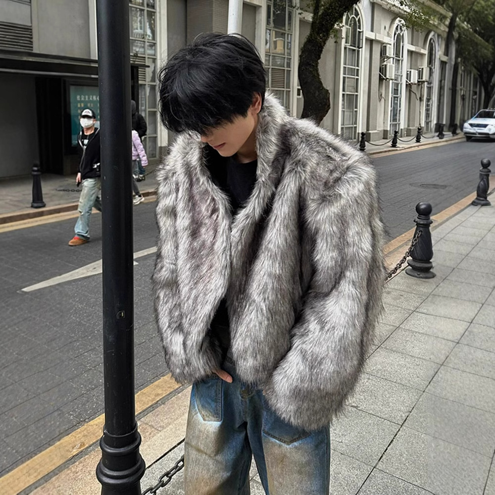 2025冬季新款防皮草外套潮男韩版时尚宽松百搭休闲毛毛绒皮草大衣