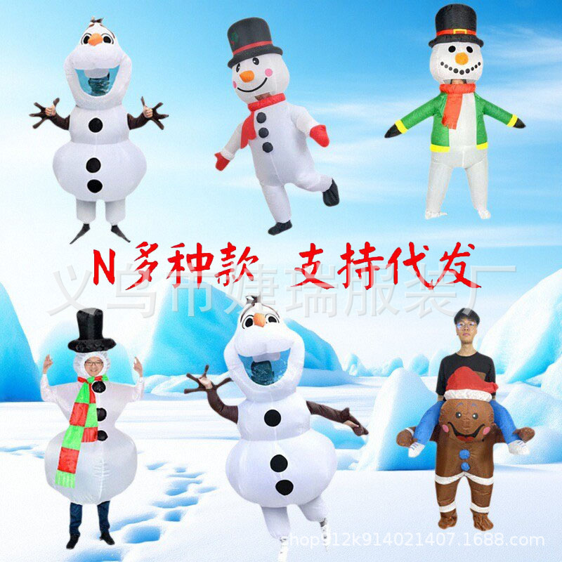 跨境万圣节新款雪宝圣诞系列充气服雪人麋鹿圣诞老人派对表演道具