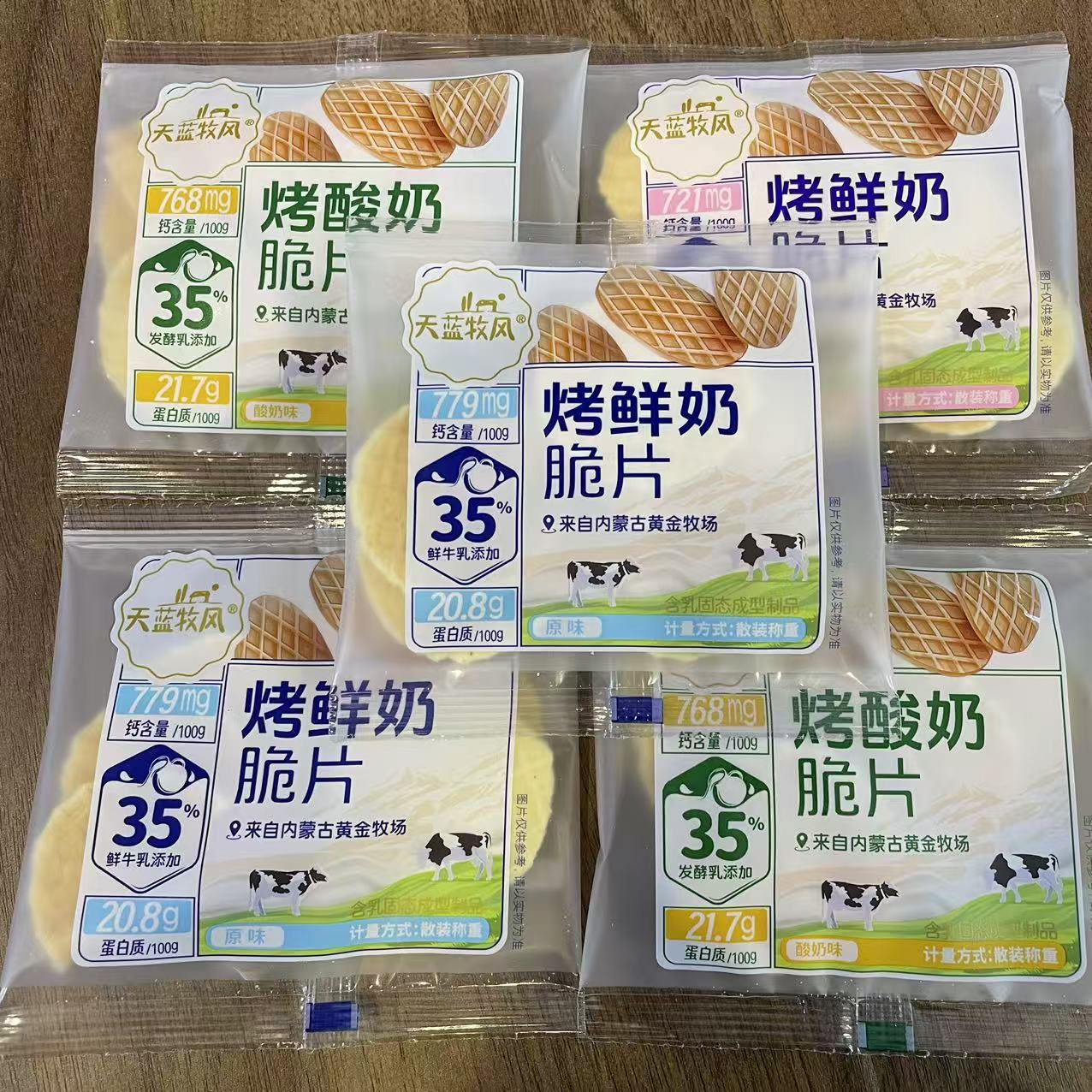 天蓝牧风烤鲜奶脆片散装称重1斤约27小包内蒙特产儿童零食