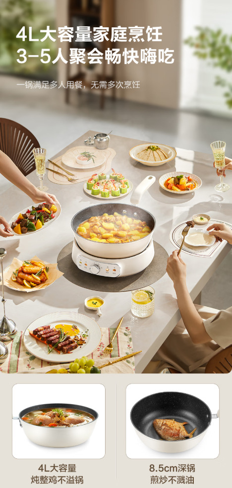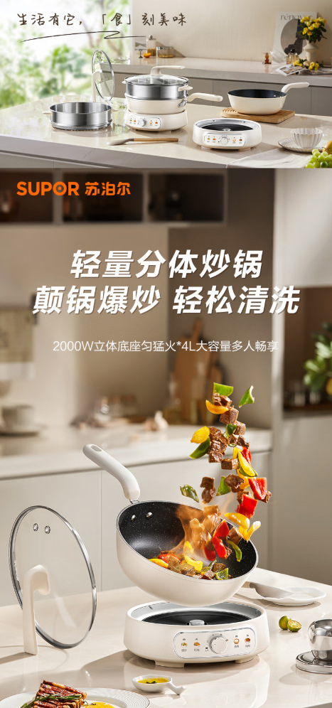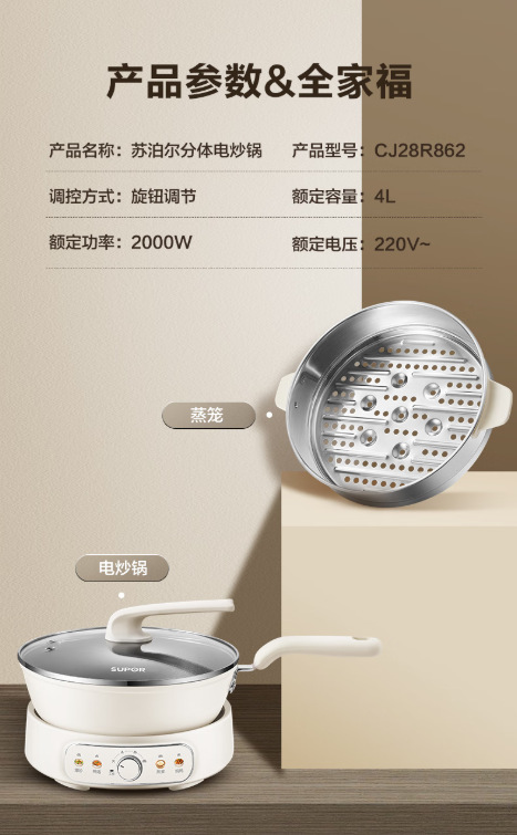 苏泊尔电炒锅家用多功能炒菜蒸锅分体式粘锅电火锅电煮锅烹饪机