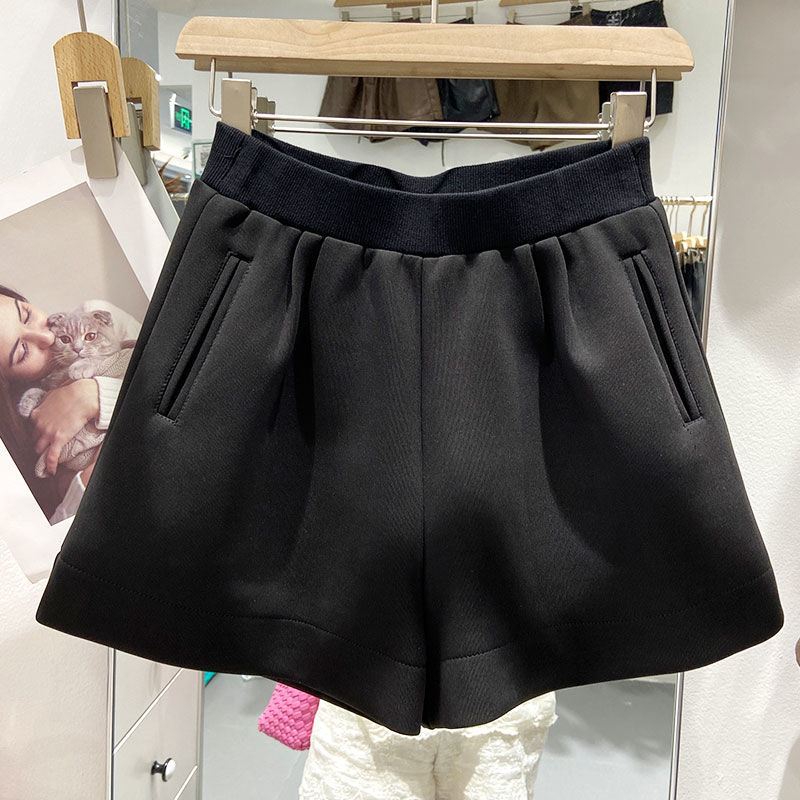 黑色毛呢休闲短裤女2025新款秋冬季高腰显瘦A字阔腿裤小个子外穿