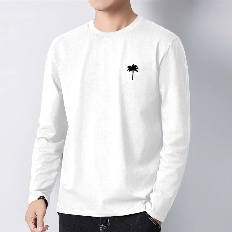 春と秋のゆったりとしたメンズトップス、春のトレンドブランド、インナー用長袖、メンズ純綿シャツ、白