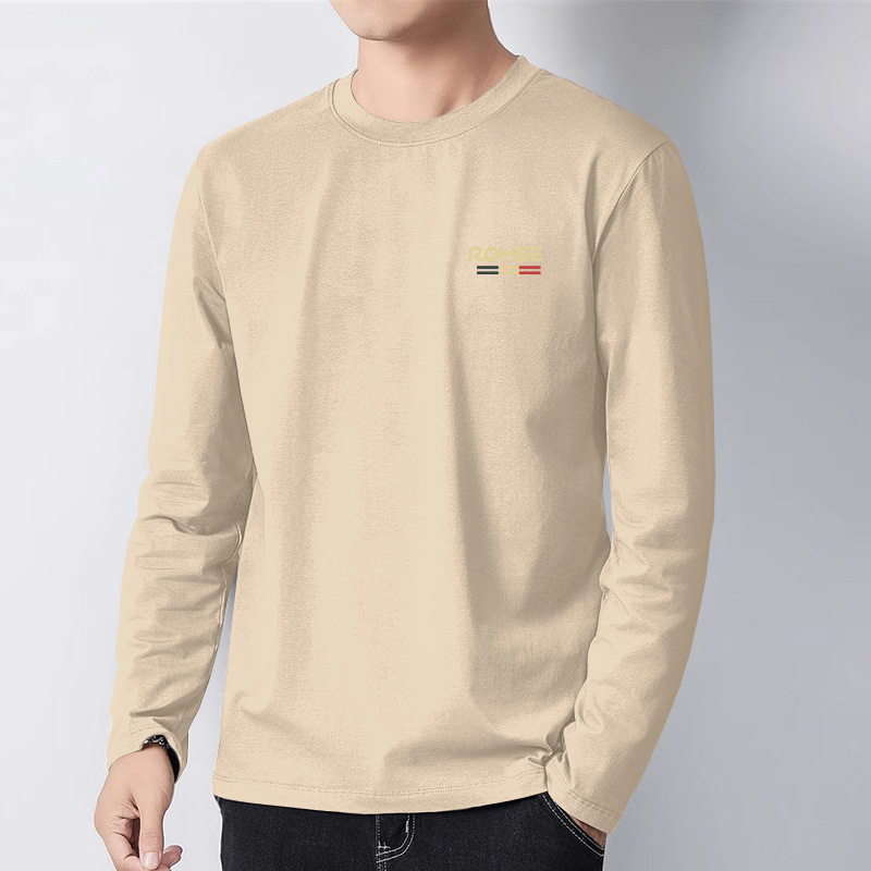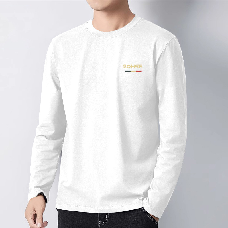 ゆったりとしたメンズトップス、インナーウェア、香港風純綿、秋冬長袖、新作Tシャツ、白シャツ