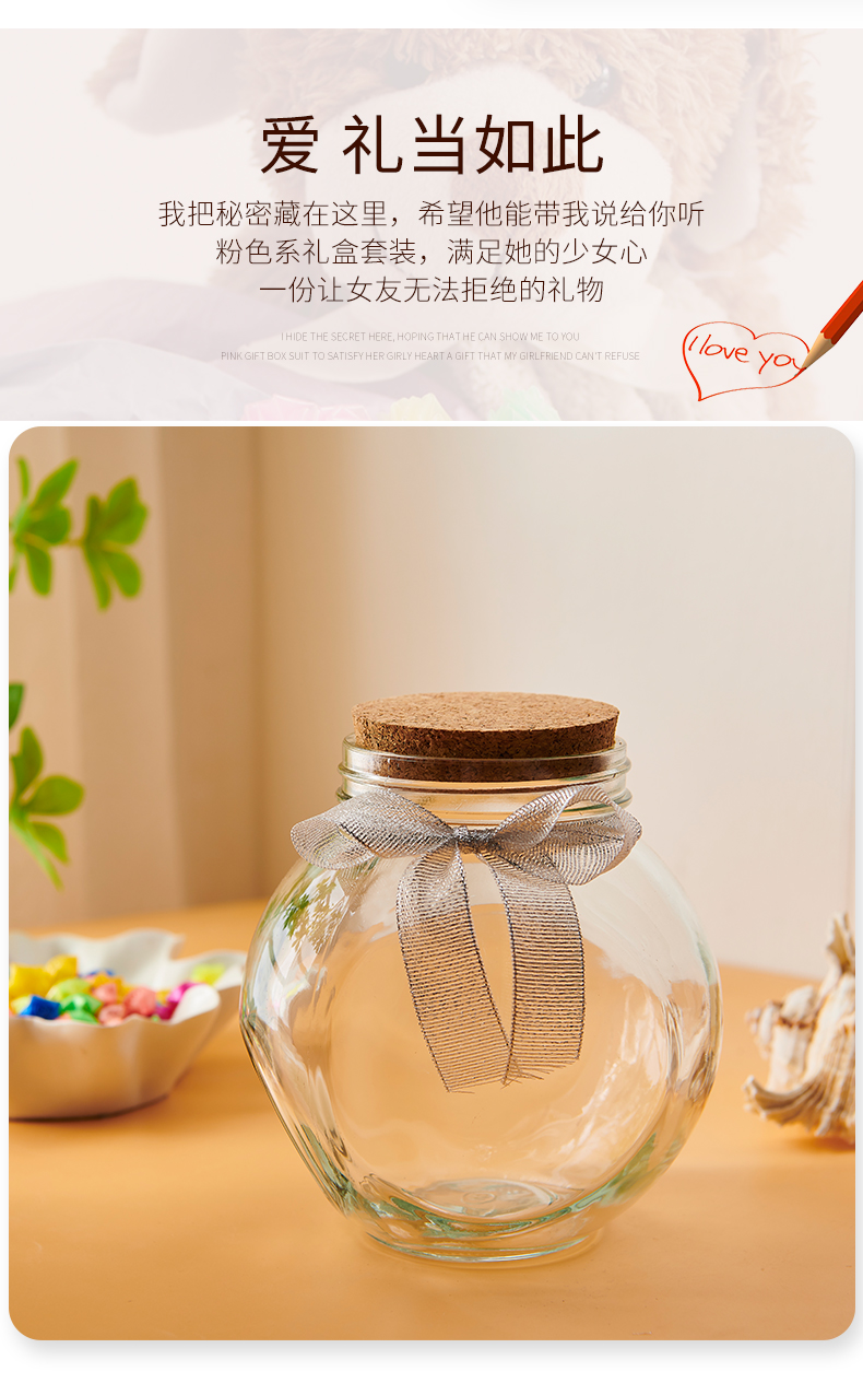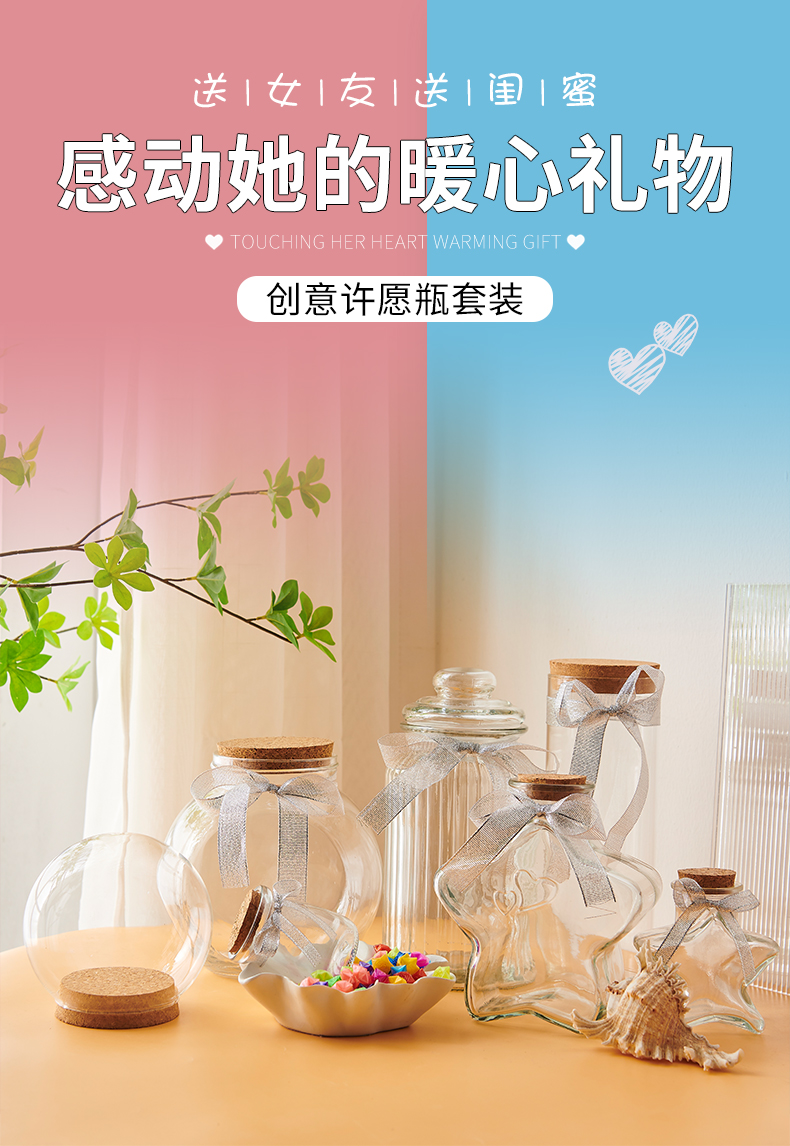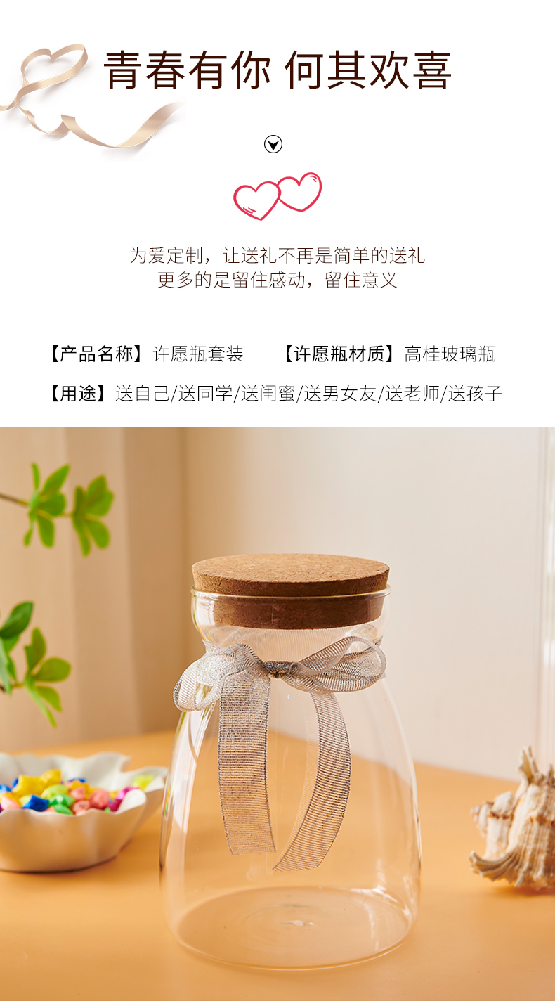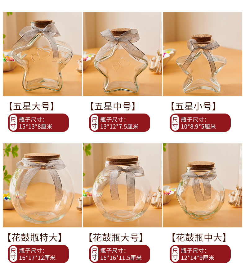 ガラス願い事瓶木栓貝殻砂乾花貯蔵瓶虹瓶漂流空瓶幸運星折り紙