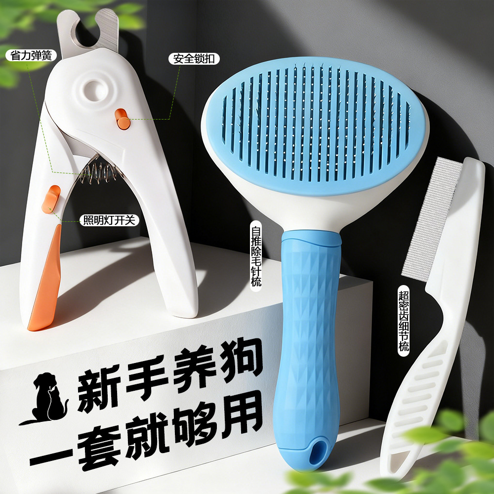 撸狗三件套狗狗指甲剪套装除毛梳毛器宠物毛梳子清洁除蚤梳宠物梳