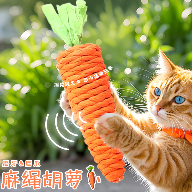 猫のおもちゃのかわいいニンジンは鈴を持って猫の棒を笑わせます。