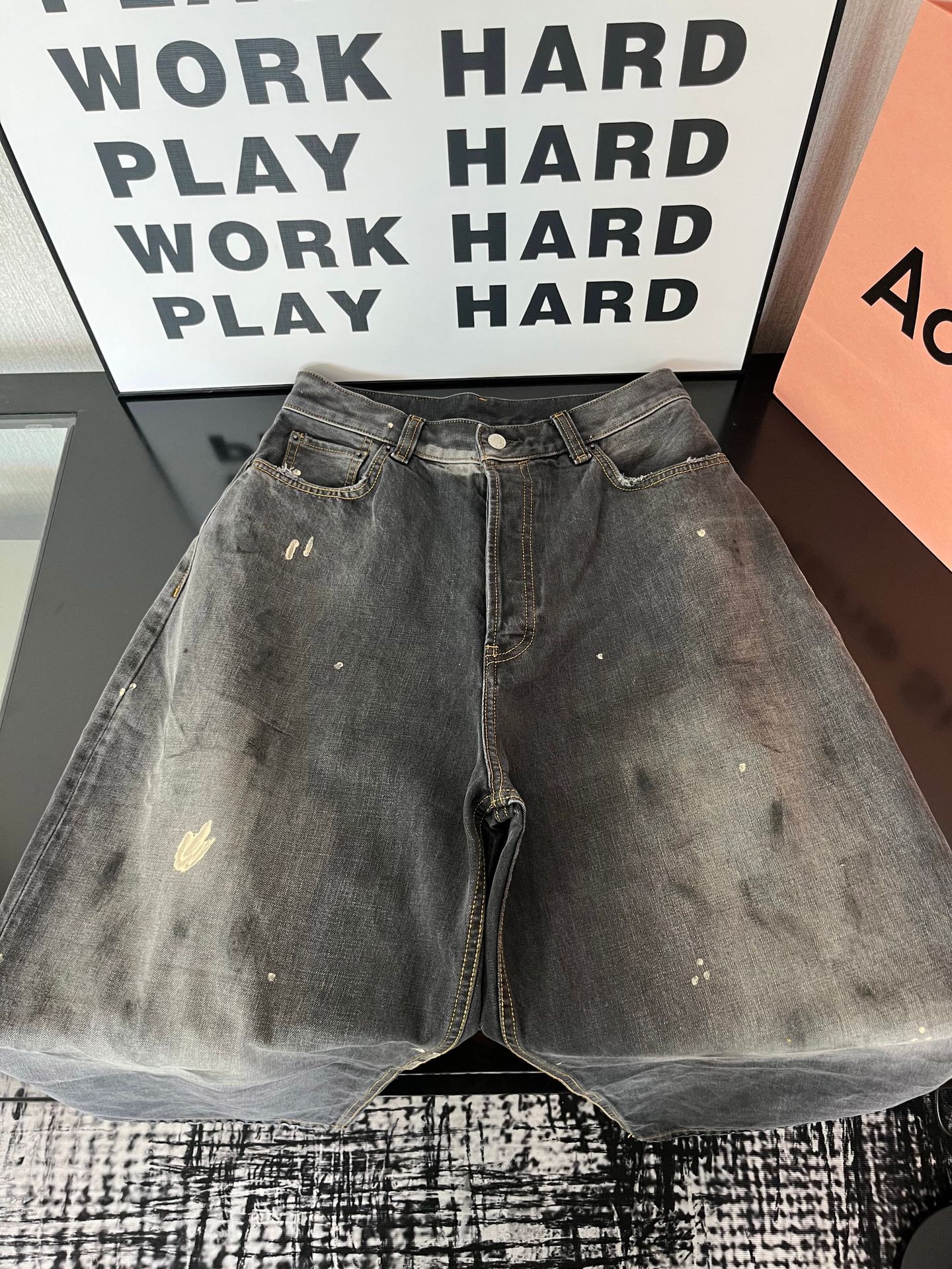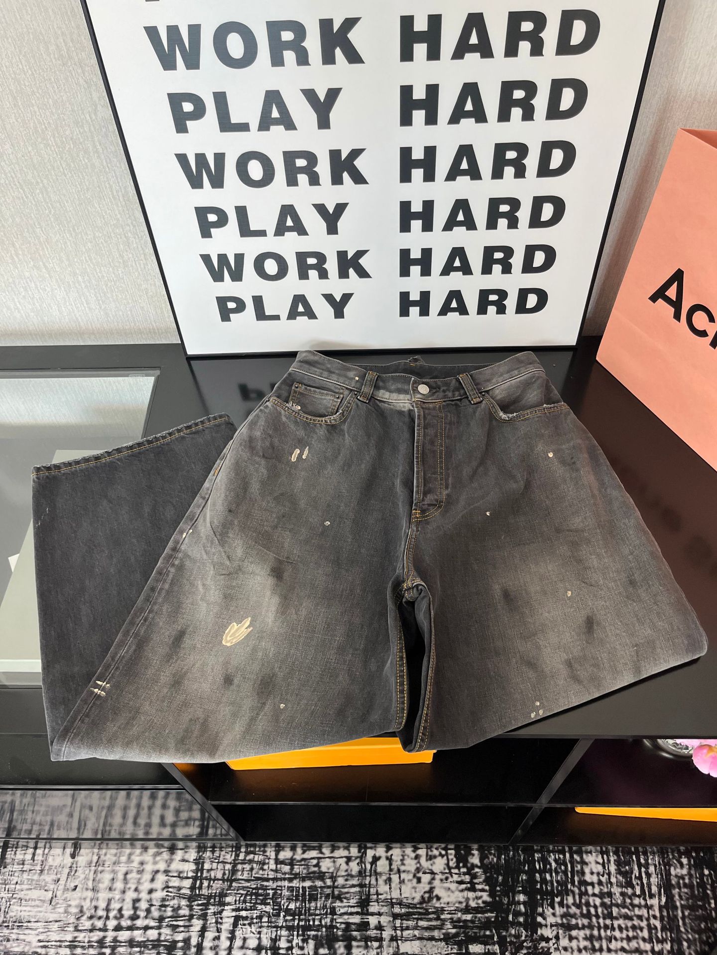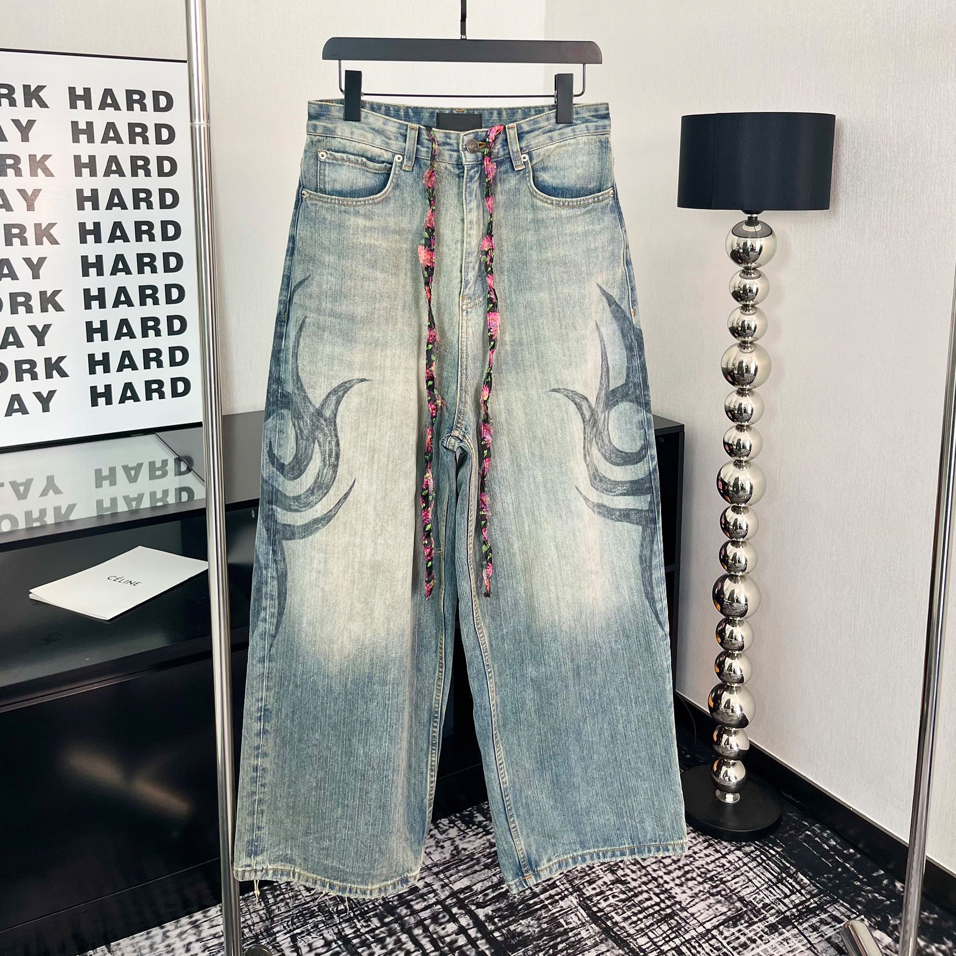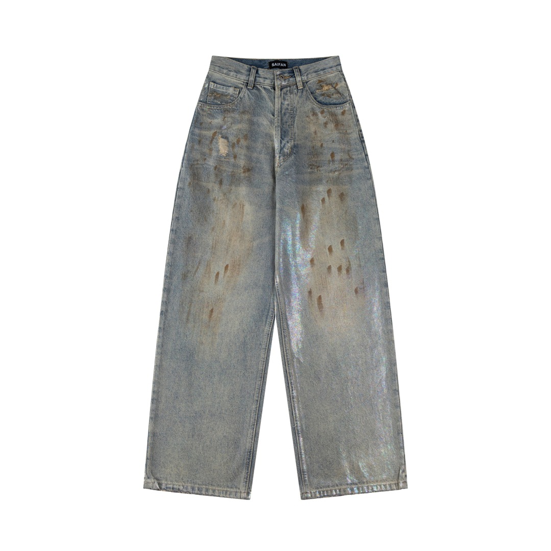 Ac 25ss新款泼墨水洗做旧牛仔裤男女同款宽松长裤