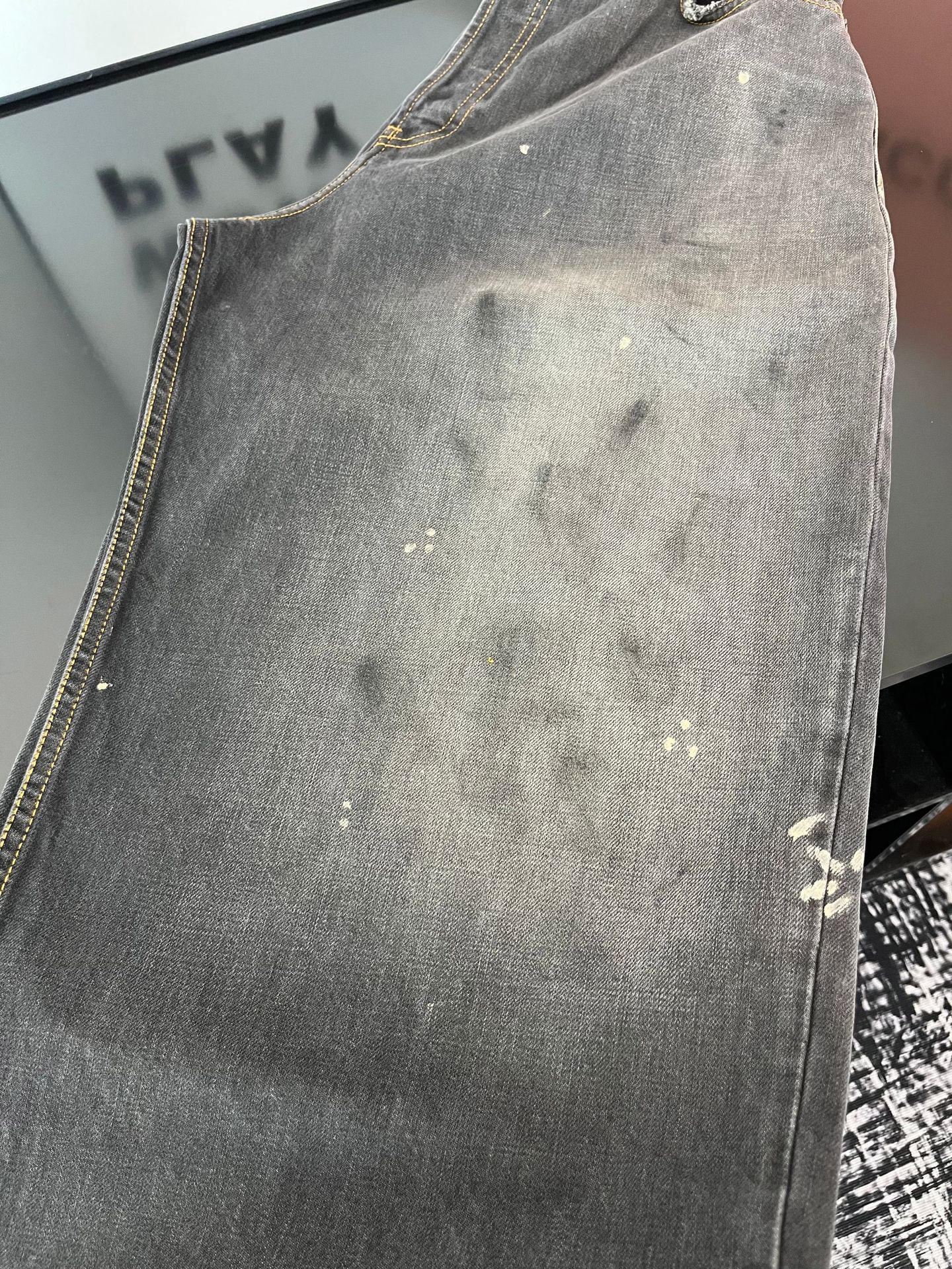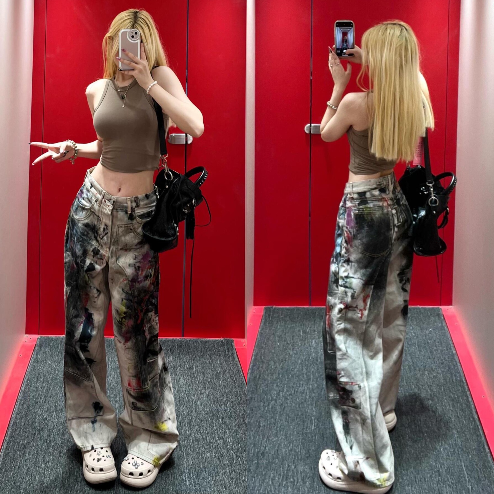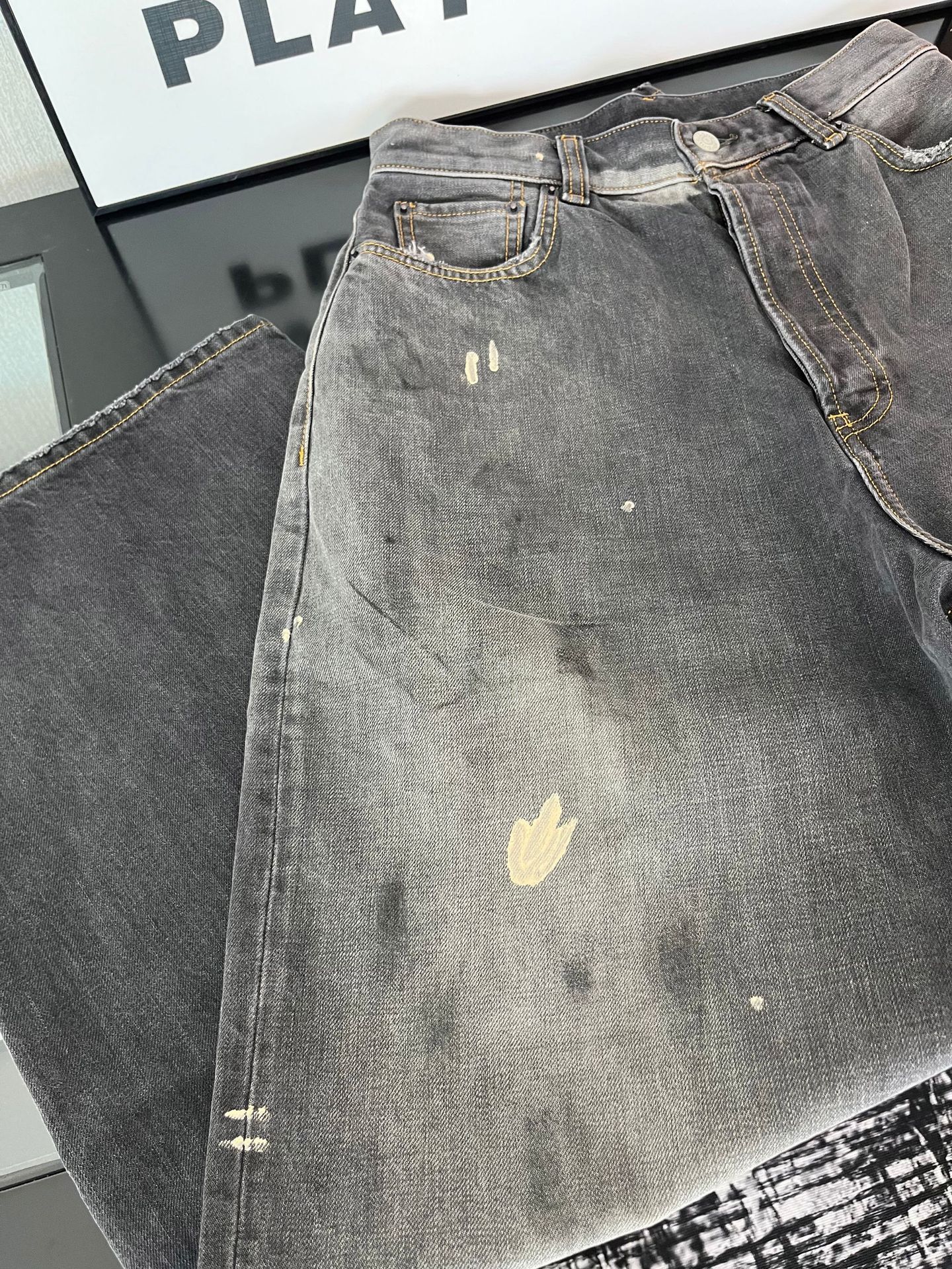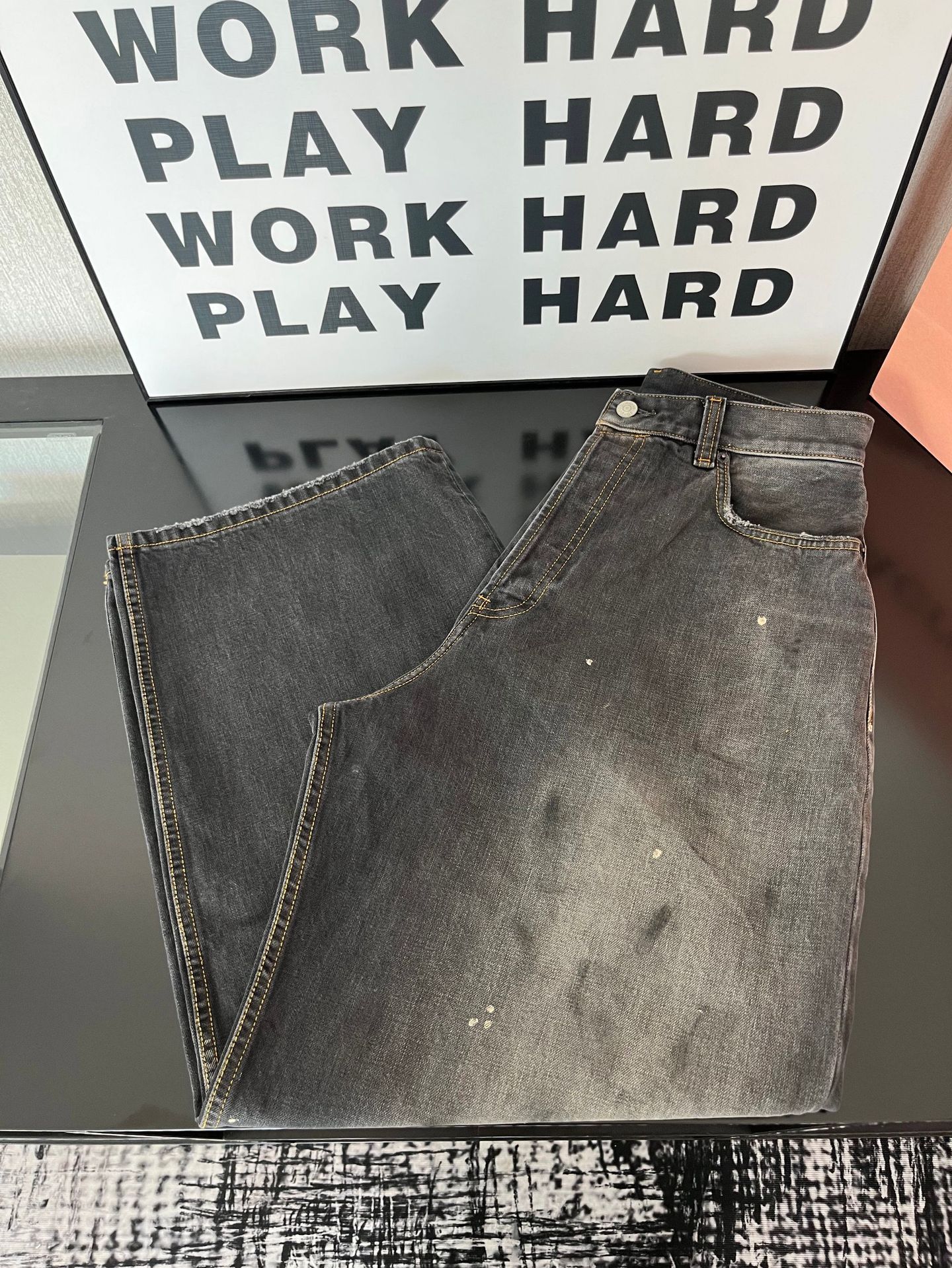 Ac 25ss新款泼墨水洗做旧牛仔裤男女同款宽松长裤
