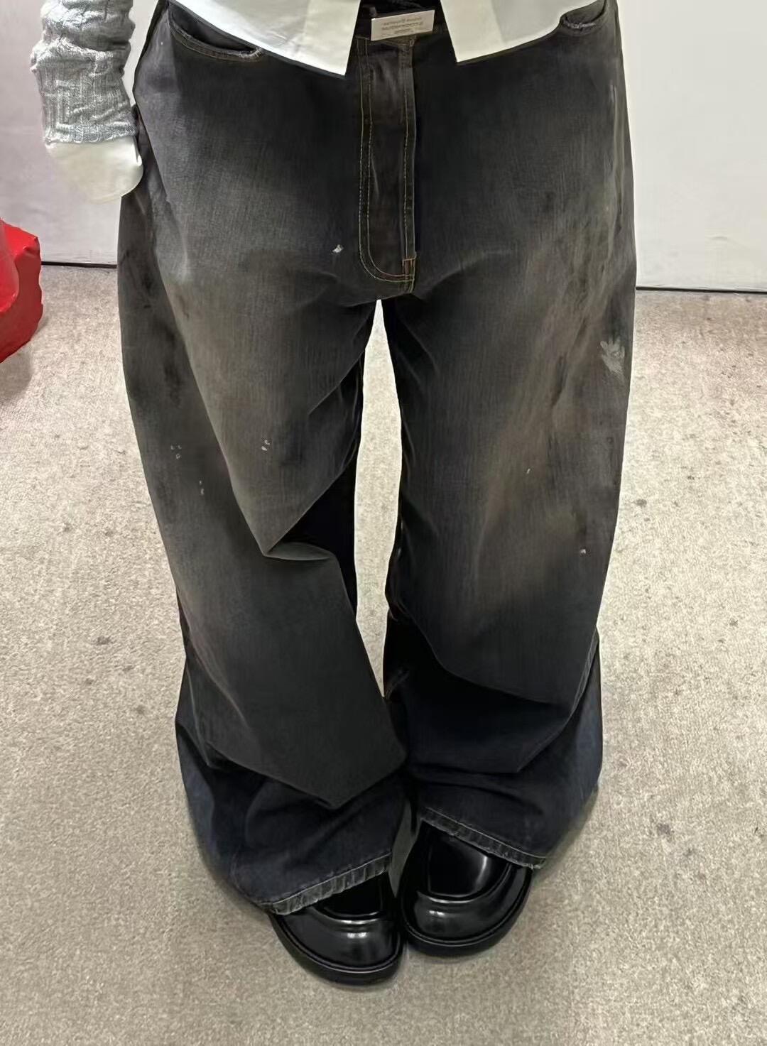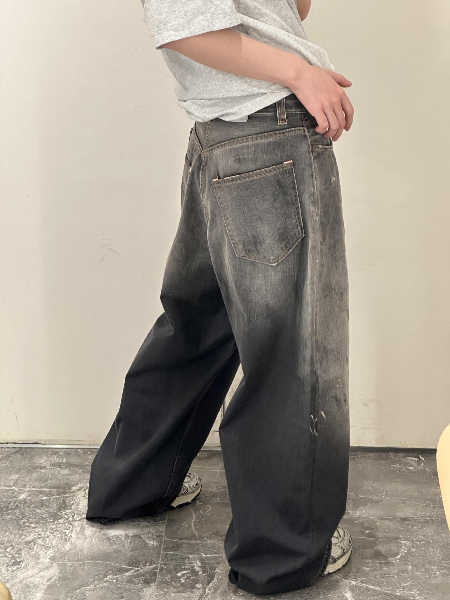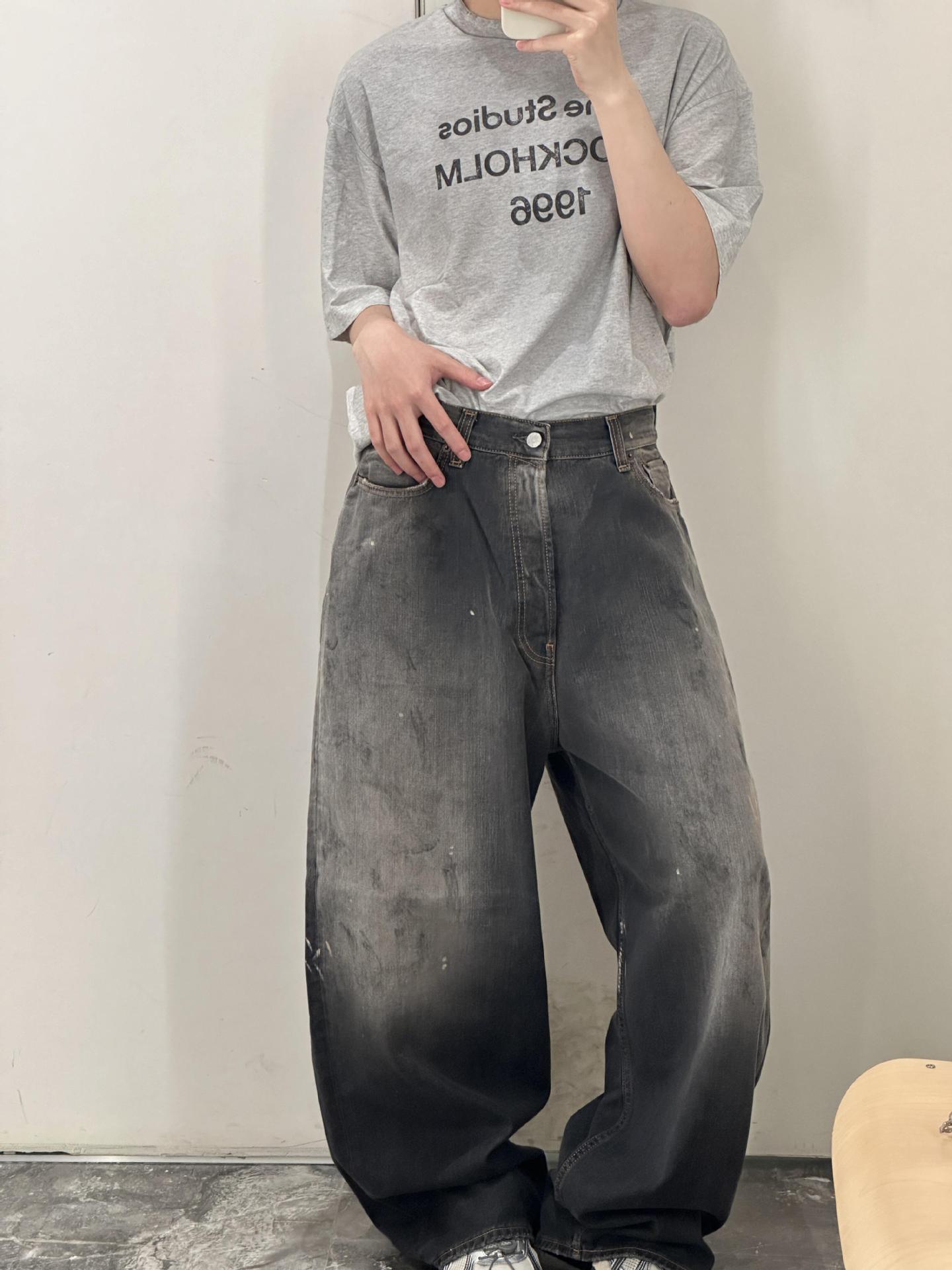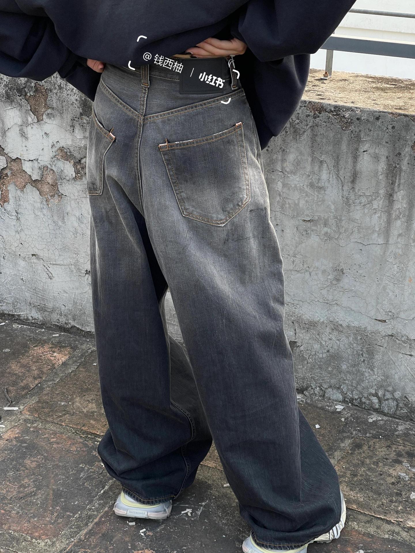 正確なトップ版AC家2023M男女同項のゆるいbaggyはやせている広脚の汚れたインクジーンズを示している