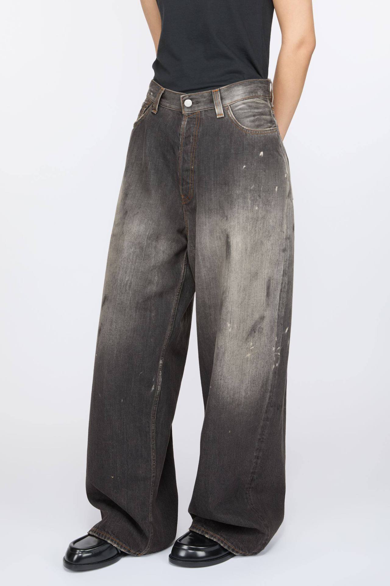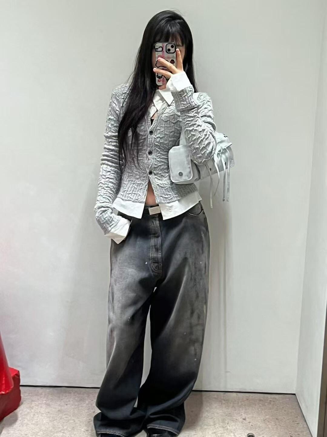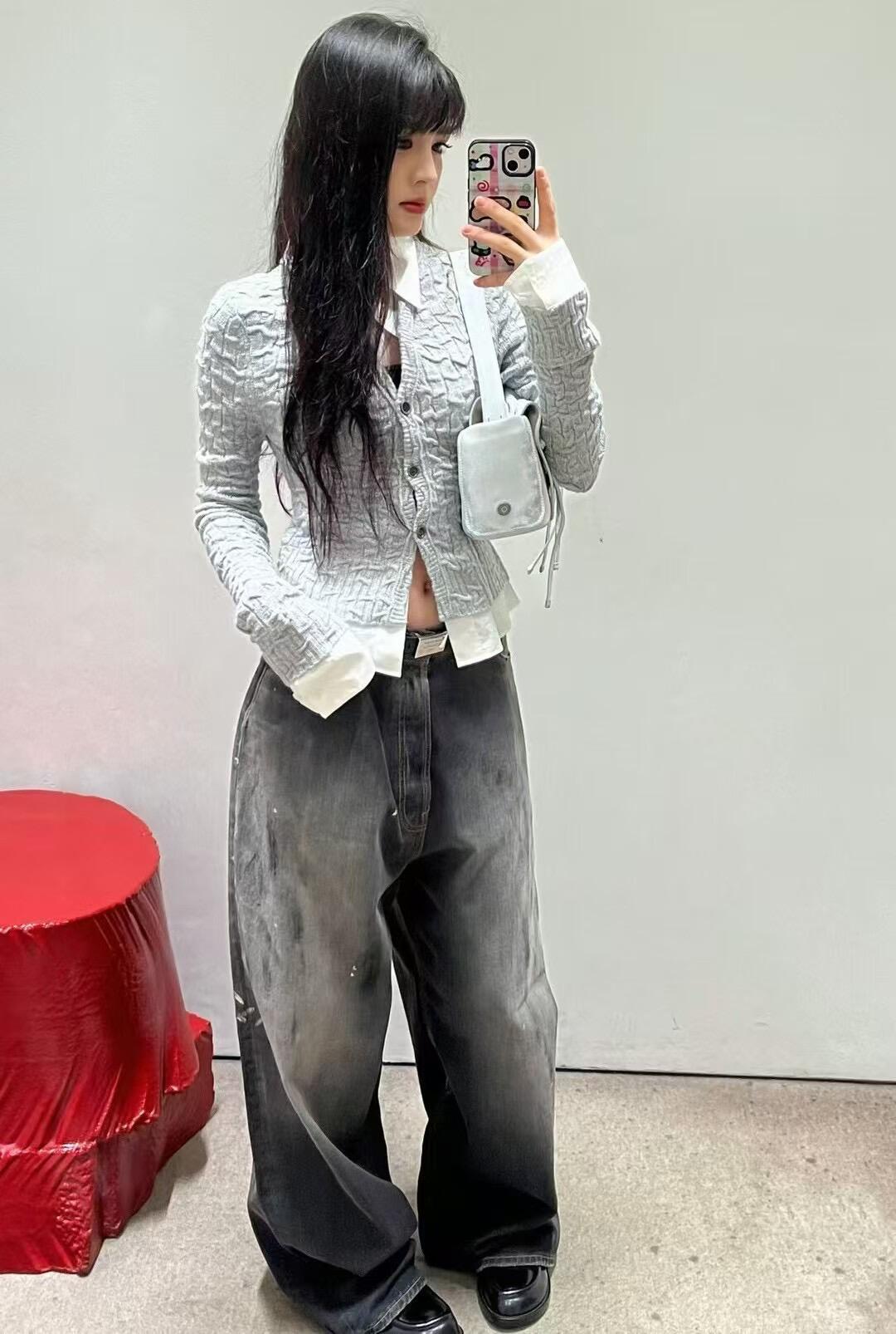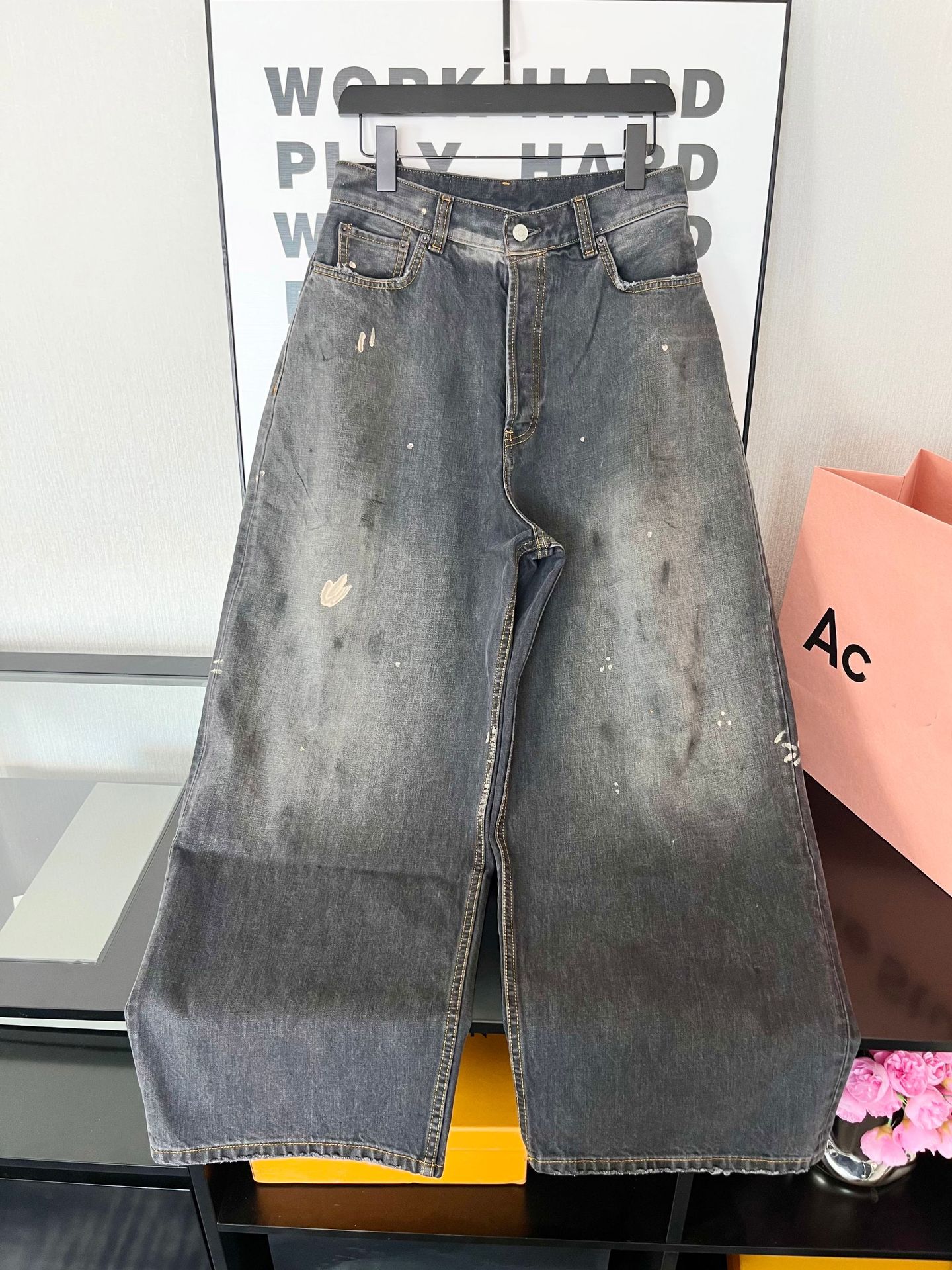 正確なトップ版AC家2023M男女同項のゆるいbaggyはやせている広脚の汚れたインクジーンズを示している